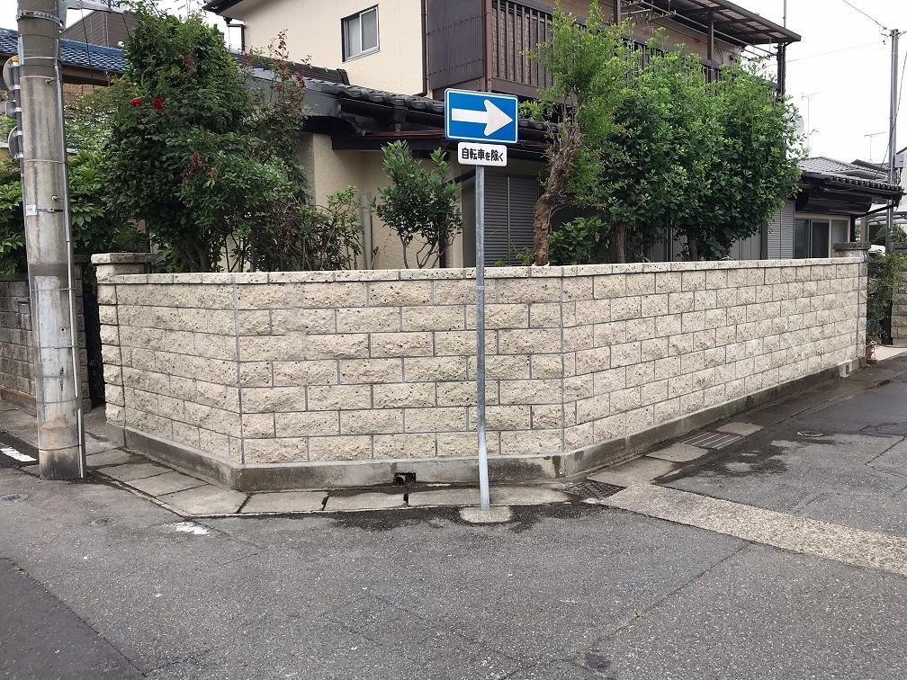 OB様からの工事依頼です。ブロック塀が破損してしまい、 車の通りも多い道路ですので慎重に作業を行いました。 新たにお家を守るブロック塀の完成です