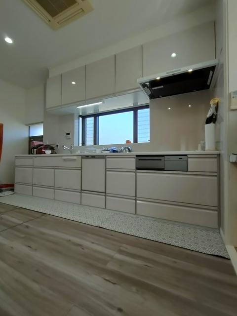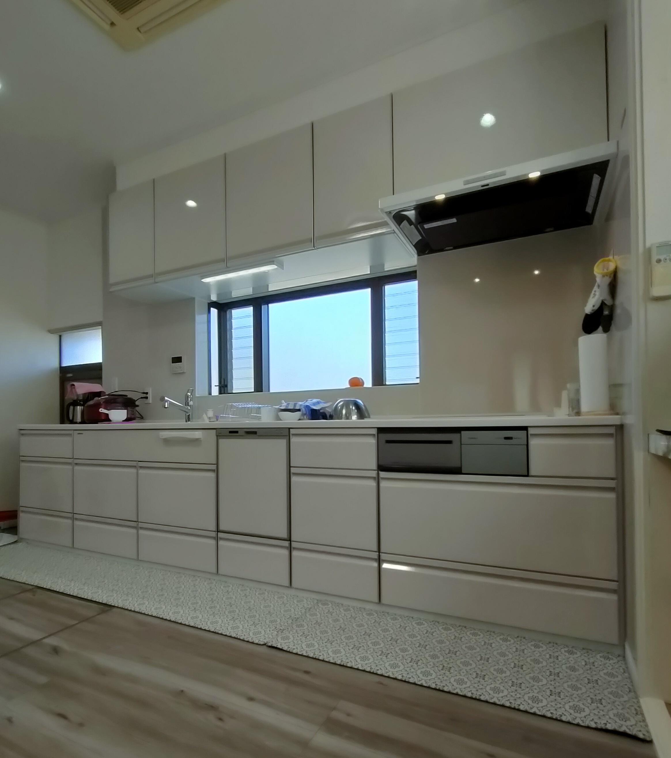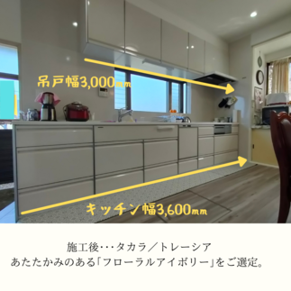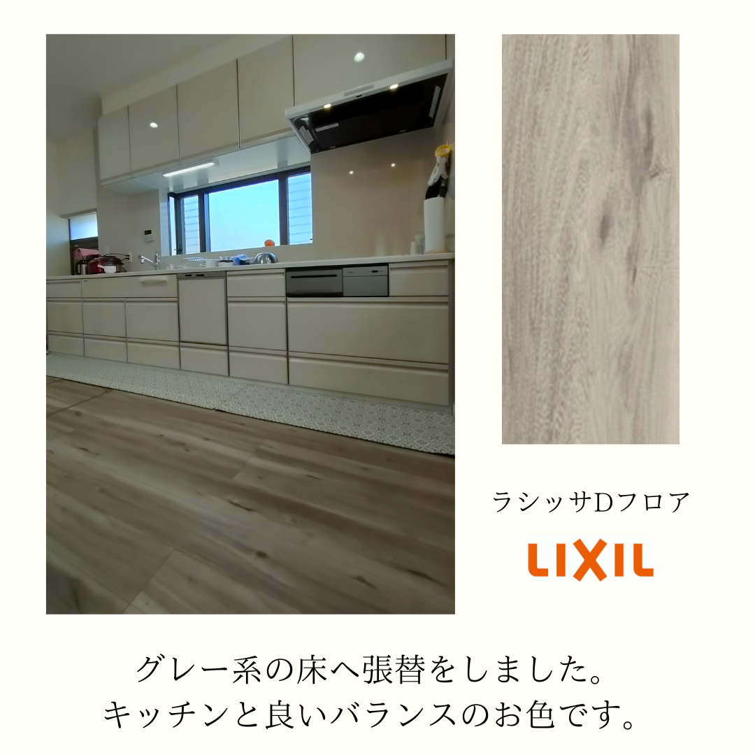 OB様からのリピート工事で、今回はキッチンリフォームを行いました。 扉カラーや床のお色は奥様がご選定され、良い色合いとなりました。