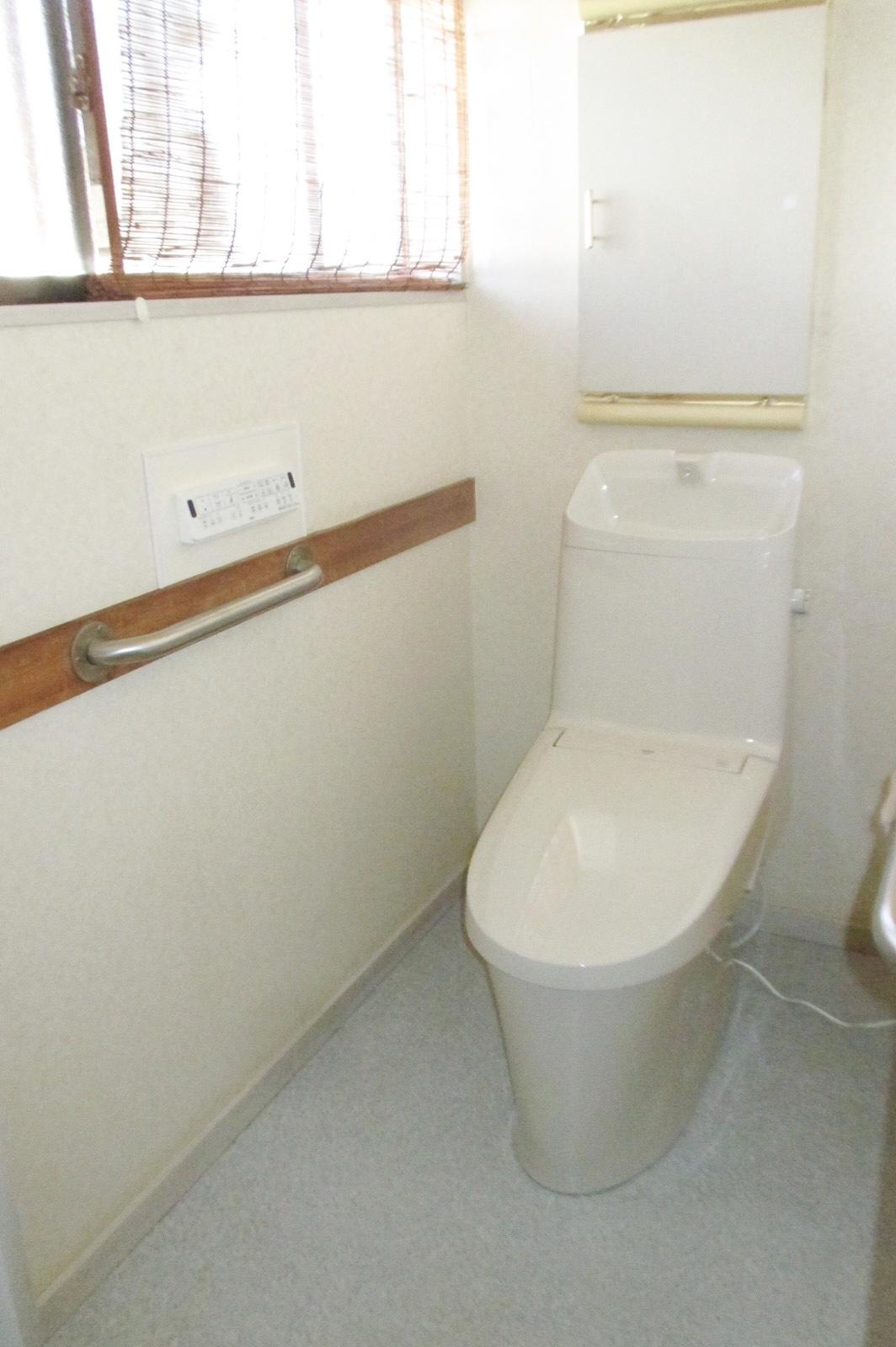 30年以上お使いのトイレ。特に大きな故障は見られませんが壊れる前に交換をご希望され、 工事に至りました。 自動で開閉するフルオート便座がご希望でしたので、 LIXILのアメージュシャワートイレをご提案させていただきました。 壁や床のクロスはそのままで、トイレの交換のみでしたので工事時間は約半日となります。 30年前とは機能的、清掃面でも大きく変わっているトイレを永くお使いいただければと思います。