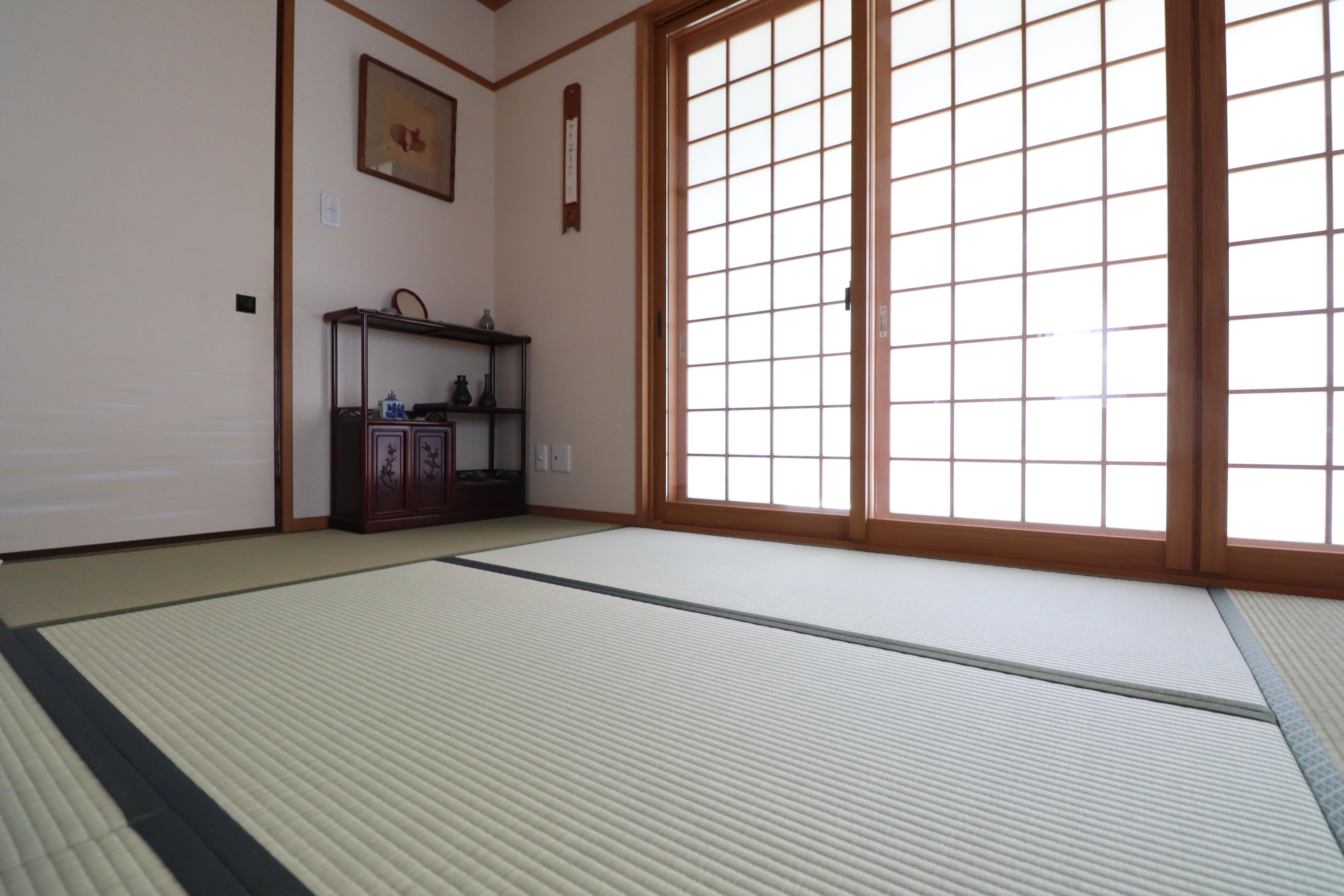 和室には、障子紙を思わせる和の趣が漂う格子入り複層ガラスの内窓インプラスをお選びいただきました。格子がガラス内に組み込まれているため掃除の手間が省けます。リビング・寝室を含む居室内の内窓リフォームをされました。