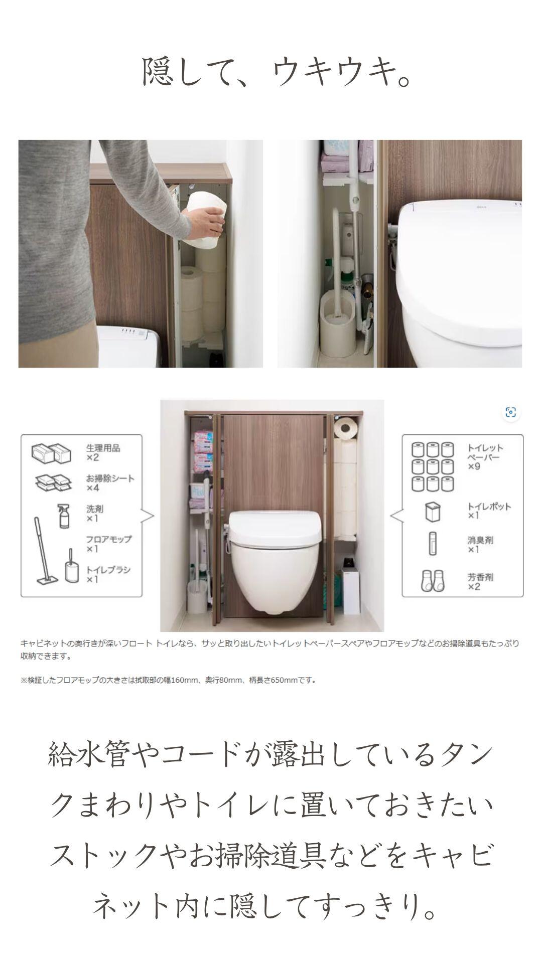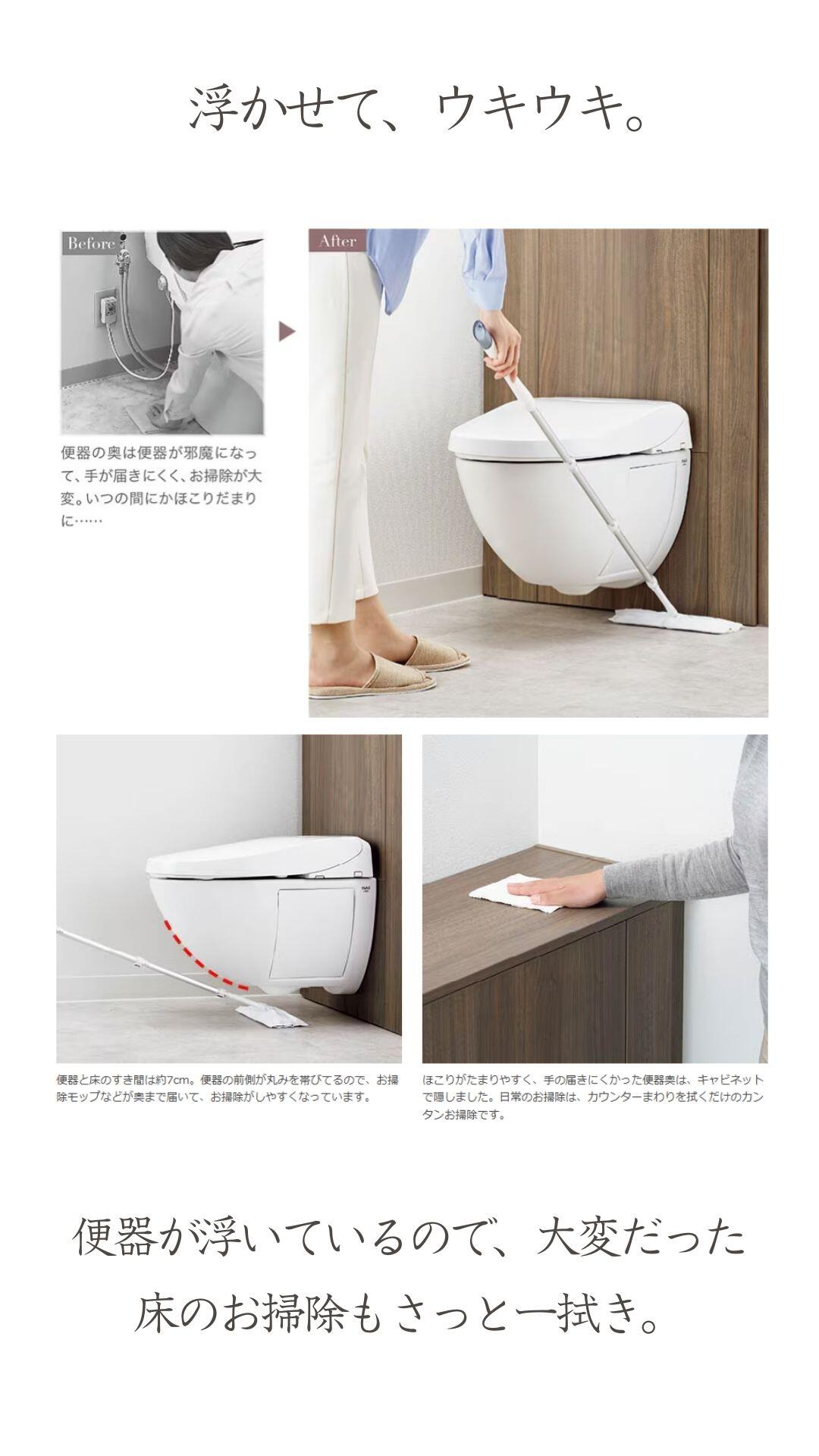 トイレは床から浮いているためお掃除のしやすいのはもちろん、節水・節電にも優れているキャビネット付フロートトイレを選定されました。