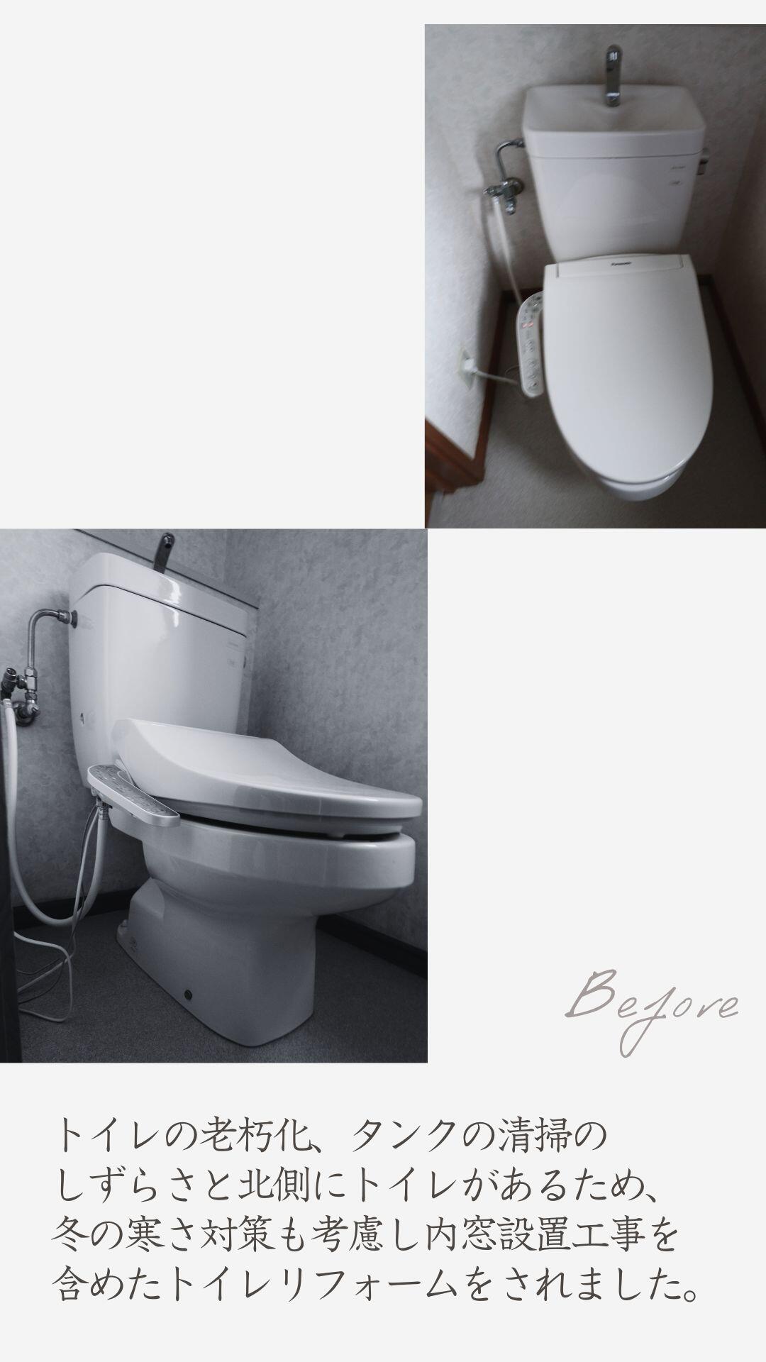 トイレの老朽化、タンクの清掃のしずらさと北側にトイレがあるため、冬の寒さ対策も考慮しリフォームをされました。