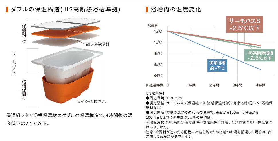 水廻り設備に経年劣化を感じられ、 バスルームと洗面脱衣所のリフォームをされました。 ゆっくりと入浴を楽しむことが多いとうかがいバスタブ浴を重視したBタイプを。 ストレートライン浴槽は肩までしっかり温まることができます。また、直線的なフォルムがスタイリッシュな印象が特徴です。 高断熱仕様の浴槽サーモバスSで冬の季節に備え安心な浴室になりました。 併せてリフォームされた洗面化粧室は、バスルームとあわせたカラーコーディネイトされ、スタイリッシュな空間になりました。