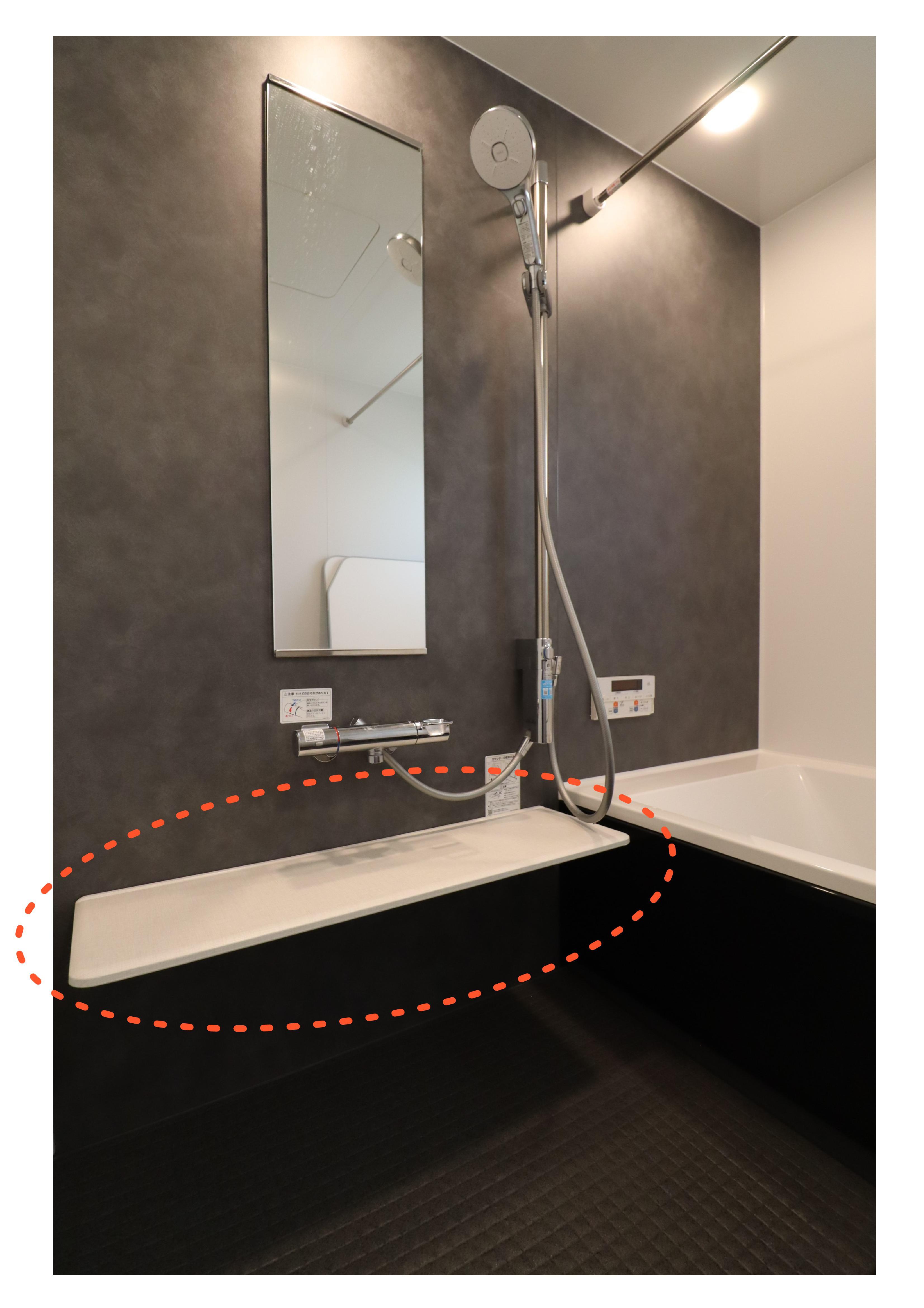 浴槽は、直線的なフォルムがスタイリッシュな印象を生むストレートライン浴槽。スタイリッシュながらも、角のラインがソフトなため、ゆったりできます。