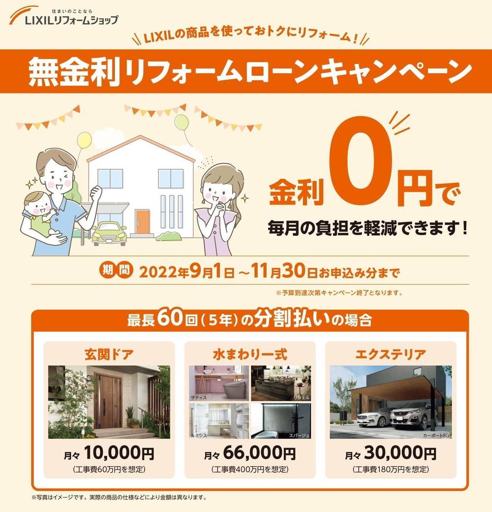 期間:2022年9月1日~11月30日ローンお申し込み分まで