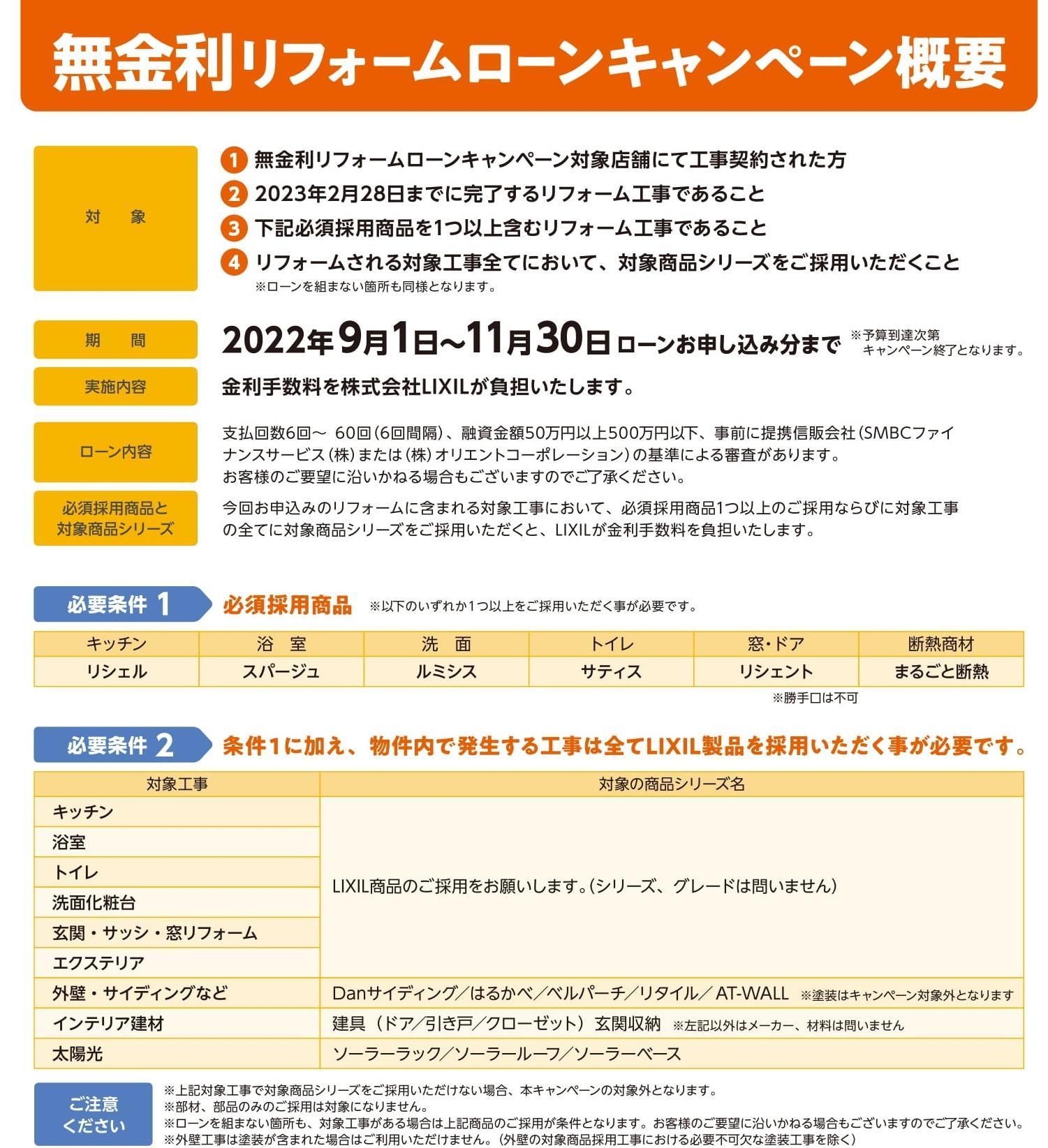 ①無金利リフォームローンキャンペーン対象店舗にて工事契約された方