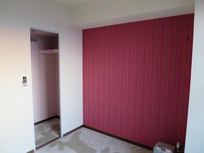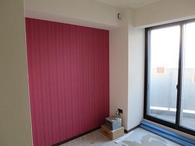 洋室②は壁1面だけのアクセント壁クロス貼り終え