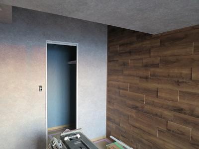 ノダの装飾壁を取付した部屋のクロス貼りが