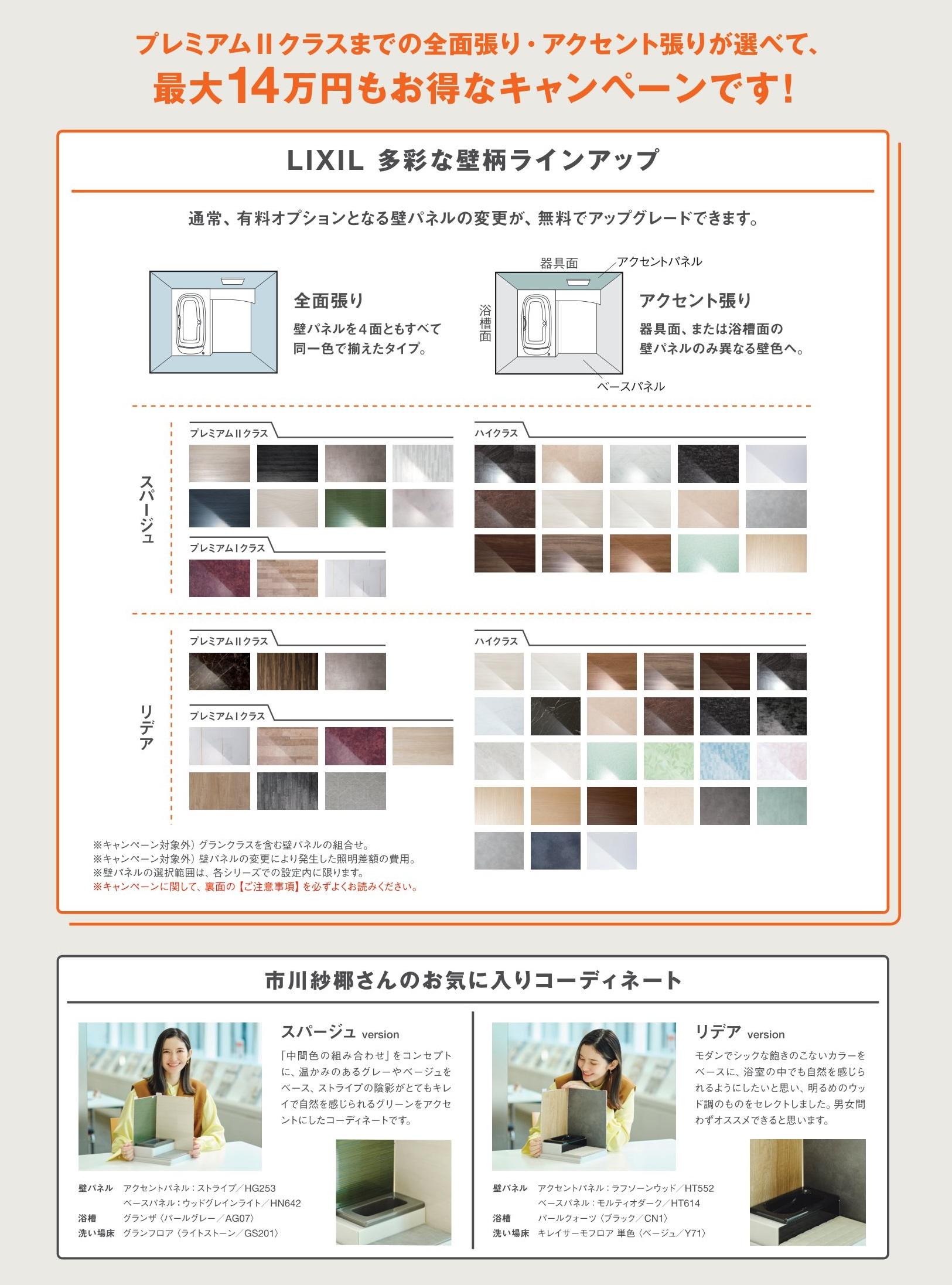 浴室55周年感謝キャンペーンとして、壁パネルの有料オプション壁パネルの変更が無料になります!