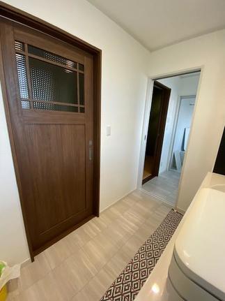 <自然光をうまく取り込む> 壁も白く仕上げたので、とても明るい空間になりました。おしゃれな建具も映えますね!