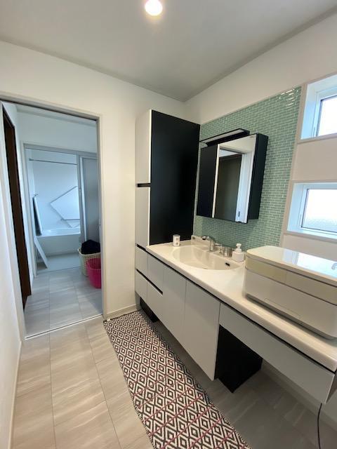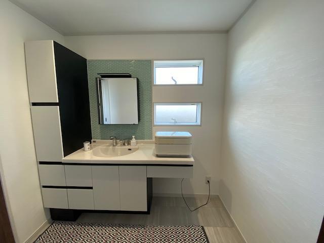 <明るく広くなった洗面化粧室> 脱衣室と独立させたことによって、使い勝手がよくなったそうです。