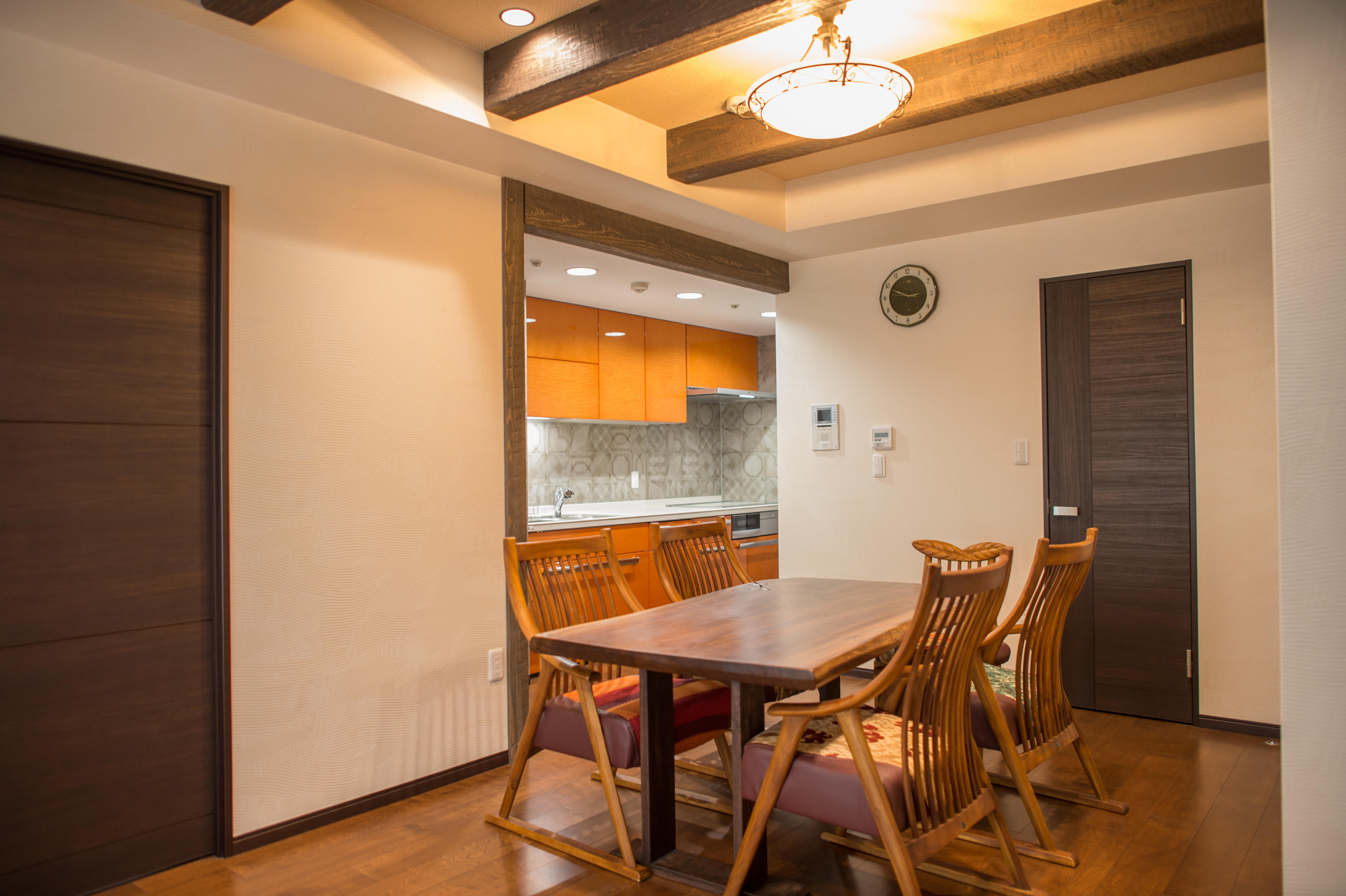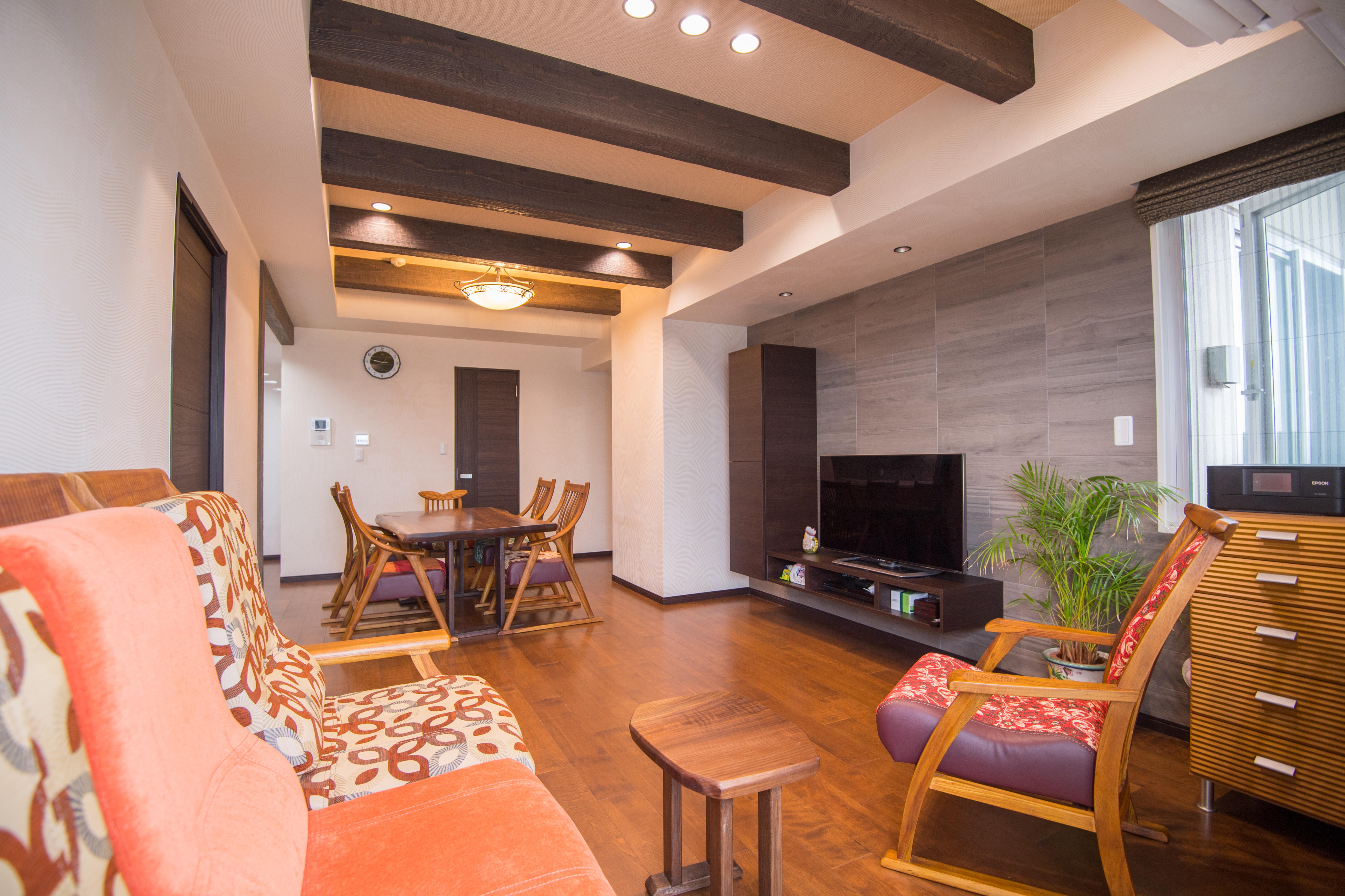 梁と壁のコントラストがメリハリのある空間に。