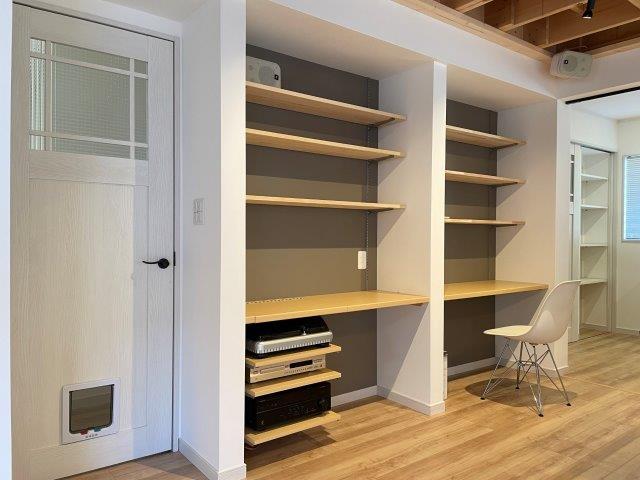ダイニングの壁一面には、小学生のお子様用スタディーデスクとご主人のお好きなオーディオコーナーをご用意。