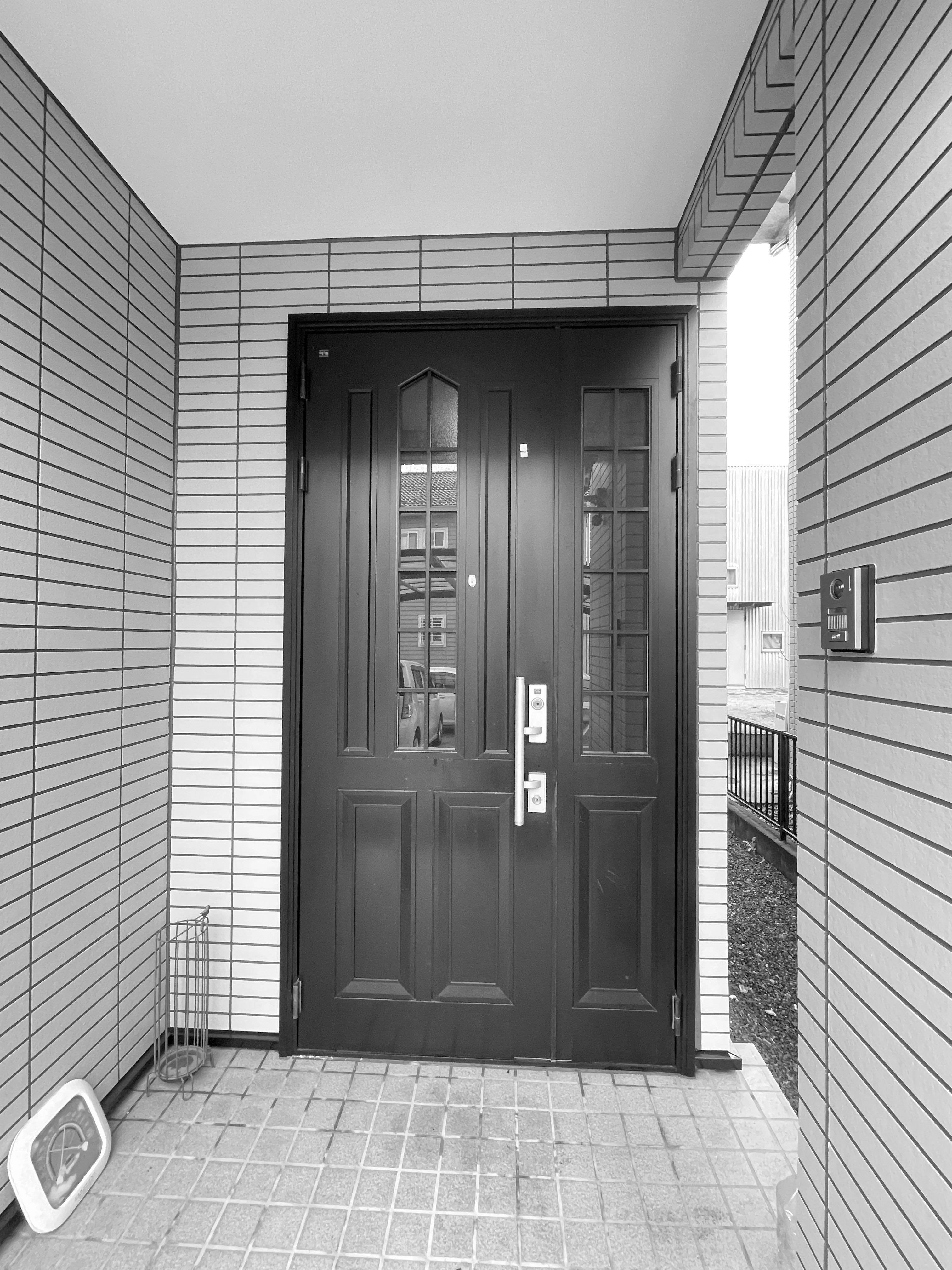 シックでエレガントな玄関のイメージを崩すことなく、種類豊富な【リシェント玄関ドア】を使用して、機能性もデザイン性もアップした玄関リフォームが完成致しました。