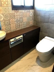 「アンティークタイル風」壁紙でヨーロピアンスタイル☆動線の使いやすさに注目のサティスSトイレ空間!