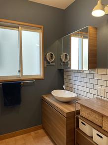 ⌒*【スモーキートーンタイル】を使用したトレンドを感じられる洗面スペース リフォーム*⌒
