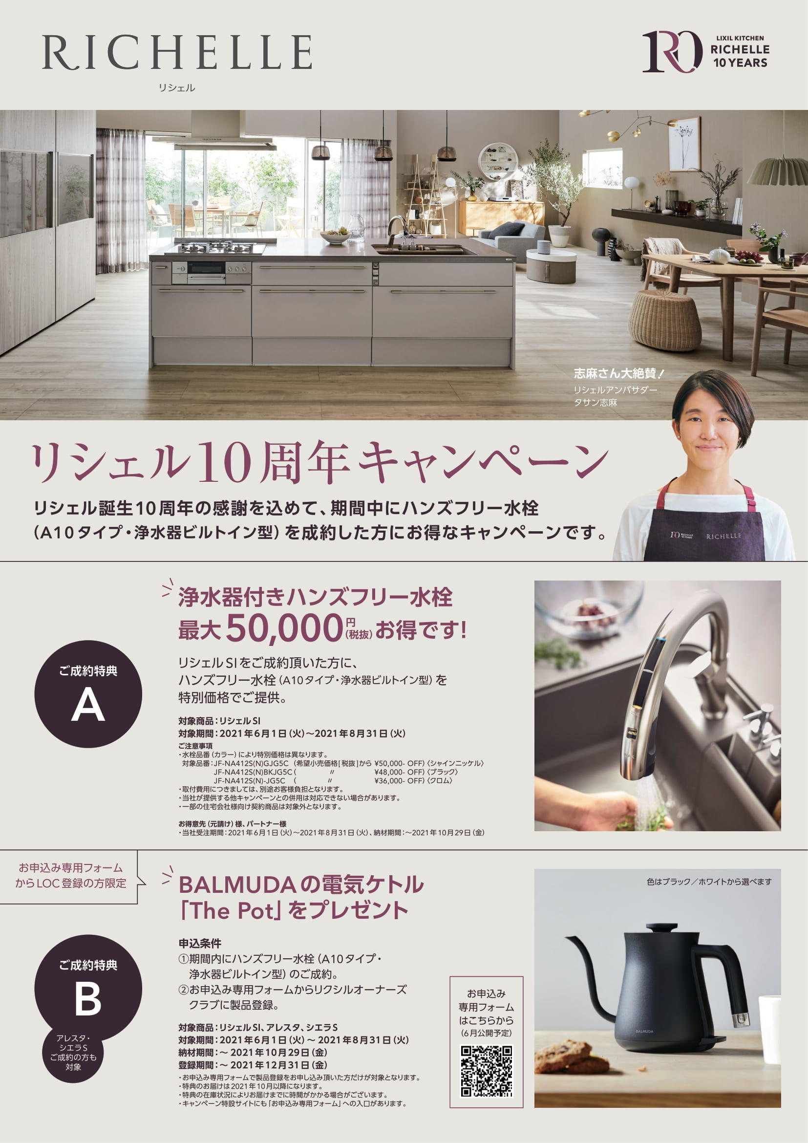 最大¥50,000 お得&BALMUDA電気ケトルをプレゼント☆ リシェル10周年キャンペーン!