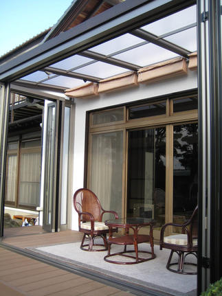 テラス屋根から、ガーデンルームにリフォーム。お茶や趣味を楽しめるもう一つの部屋が完成しました。