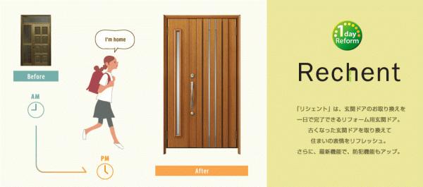 LIXILのリフォーム玄関ドア「リシェント」は、まさに1日でお取り換えできる玄関ドアです。興味のある方は、お気軽にお問い合わせください。