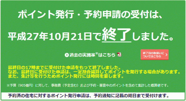 省エネ住宅エコポイントは10月21日をもちまして予算に達した為、申請終了となりました!