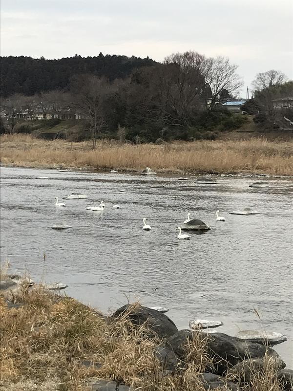 橋のたもとに白鳥の群れがいました。私の中では湖や池にいるイメージだったので珍しく思い