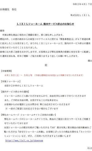 全てのLIXILショールームで、館内のサービス停止の運用を取らせていただくこととなりました。