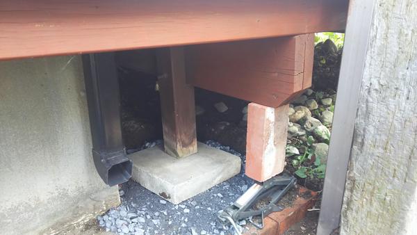 デッキの束石が外れているのに気付きました。
