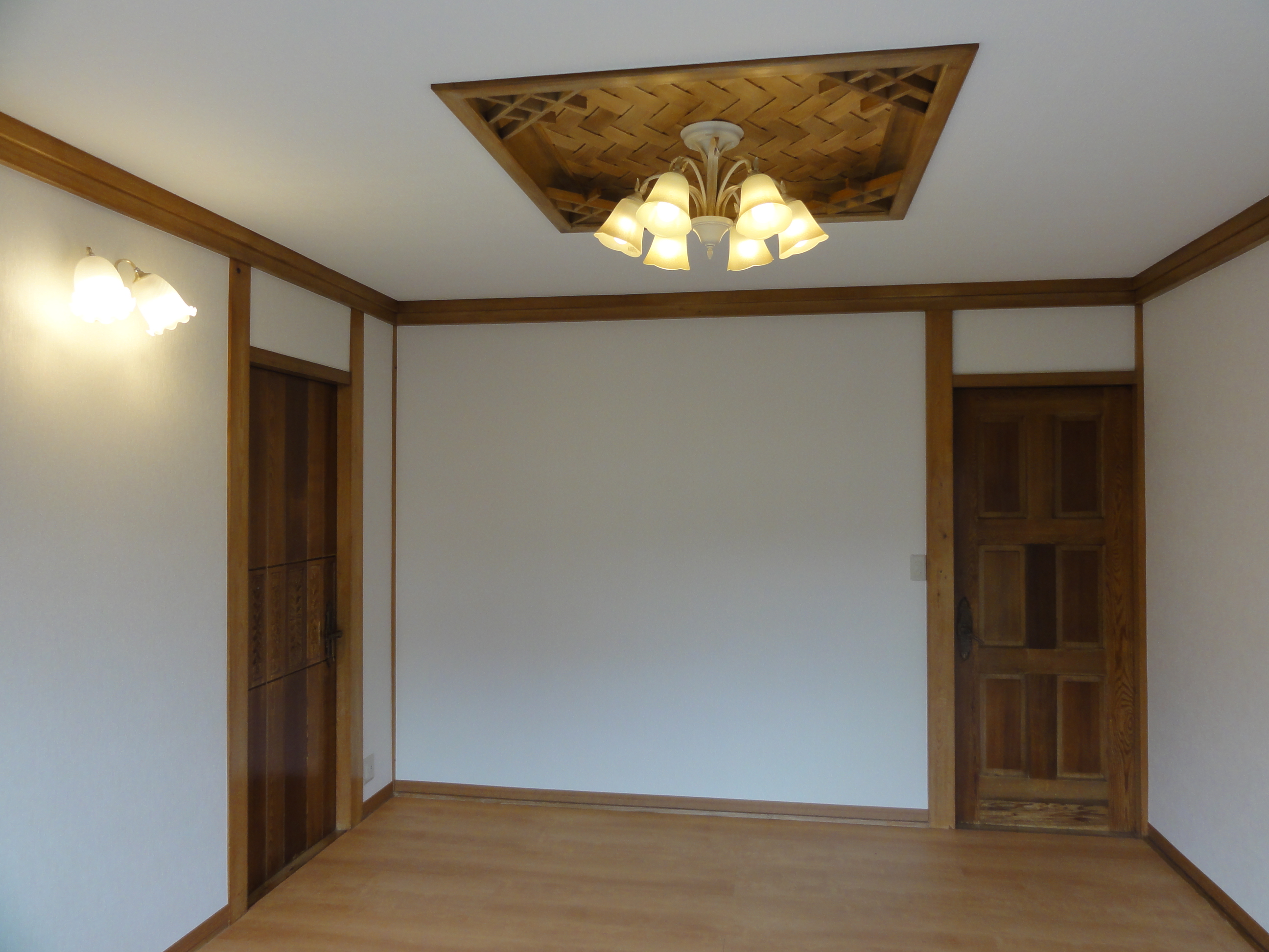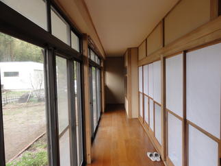 GWにお嬢様が帰省される前に「内部をきれいにしておきたい」というご相談を受けたのが、今回の工事を承るきっかけです。 今まで手を入れていないお家の内部は、経年劣化によりかなりの傷みが見受けられ、居室・廊下・玄関・広縁等々、全体的に暗い雰囲気になっていました。 特に壁は繊維壁でボロボロと落ちてきており、震災の影響によりヒビ割れが入っている箇所もありました。 また、真壁造り(和室のように、全ての壁の柱が見えている造り)のため、柱の経年劣化による変色が、暗さを助長しているようにも思えました。 そこで、木部は全てアク抜き(特殊な薬剤で木部を洗い、表面の変色を除去する施工)をし、壁・天井は繊維壁や布クロスを剥がすことなく、ベニヤを上貼りし、更にその上にお好みのビニールクロスを貼って頂くことにしたのです。 結果は写真のようにとても明るい雰囲気のインテリアになりました。 まだ、家具やAVセットの入った趣味室を見せて頂いてないのですが、今度お邪魔してG様自慢の趣味室を拝見したいと思っています。
