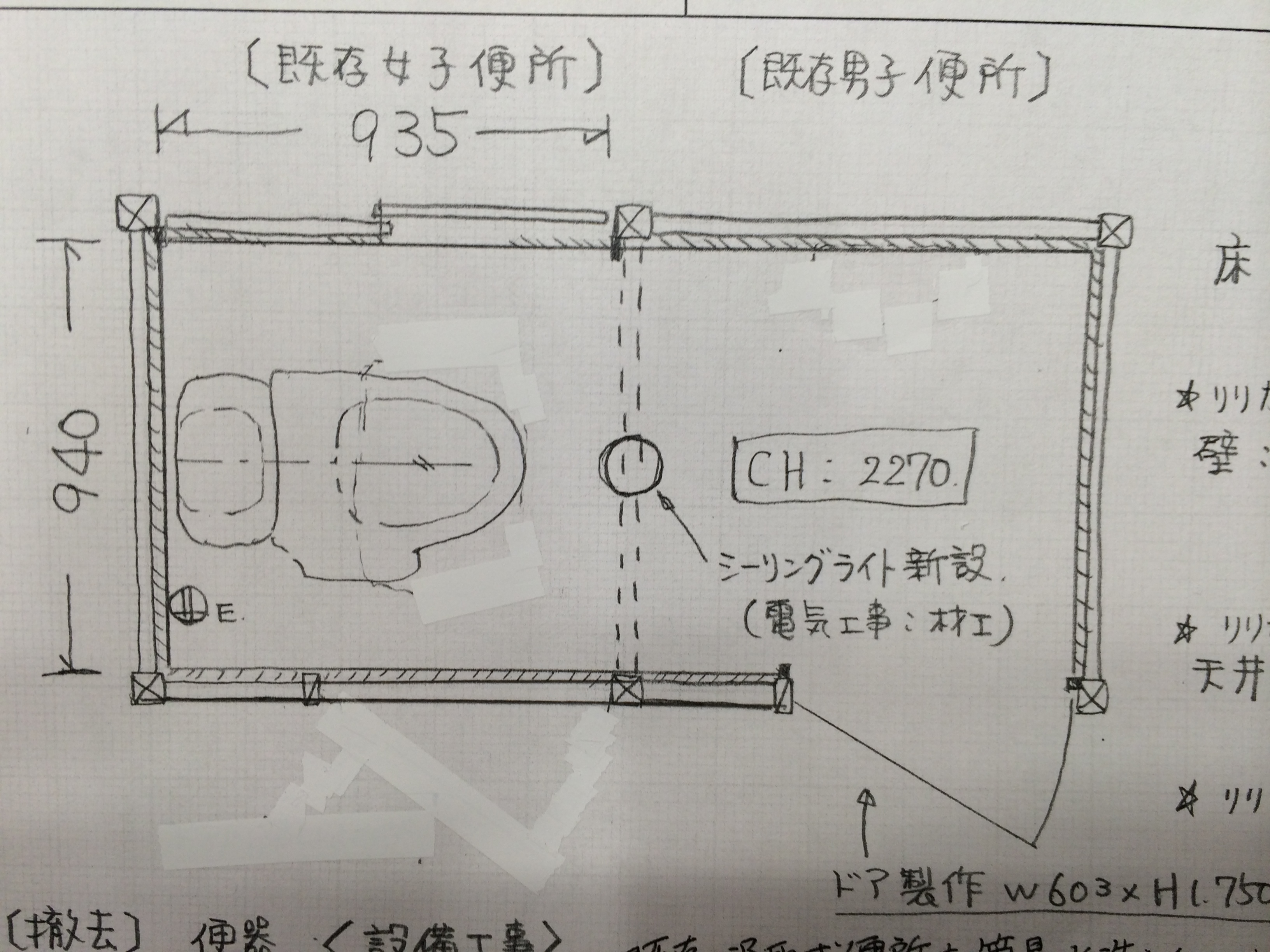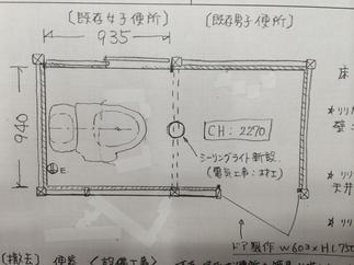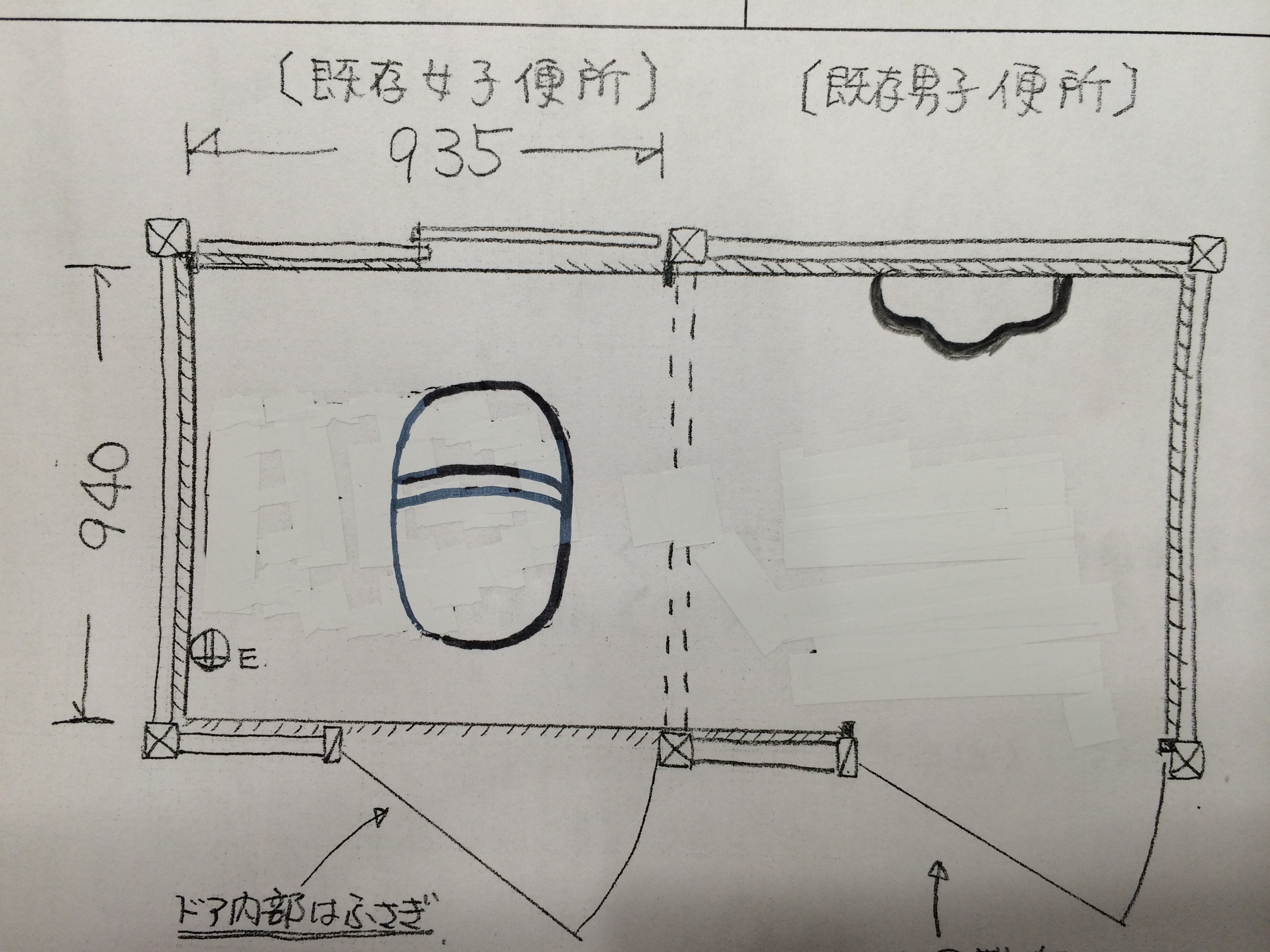 既存の大便器小便器を撤去し、1つの空間にしました。広々とした清潔感のあるトイレに仕上がり、お客様も大満足でした。工事費/40.5万円(税抜)