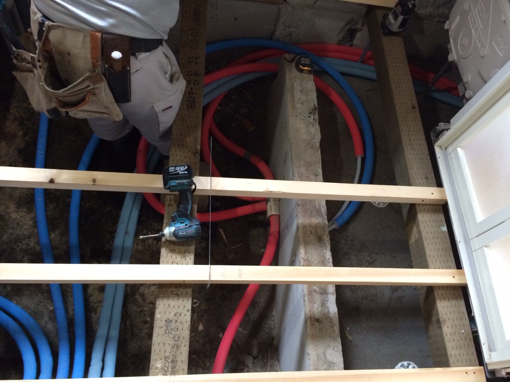 築24年のお家ですが、水廻りを使いやすくするのはもちろんの事、一番心配なさっていたのは漏水でした。微妙な水漏れで場所を特定するのは困難であり、コストもかかるので、このリフォームを機に配管までヘッダー工法で一新してしまうのはいかがでしょうか?とご提案させていただきました。 洗面室、浴室、トイレの改修を一緒に行い床を開けるため、配管工事も単独でするよりは、とてもお安く施工する事が出来ました(^^)v M様これからも何かご不便な事がございましたら、いつでもご連絡下さい(^^) 一緒に解決策を考えさせていただきたいと思います<(_ _)> p.s.追加で屋外倉庫、給湯器など、ご注文いただき大変ありがとうございました。