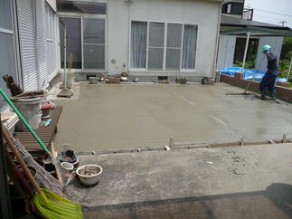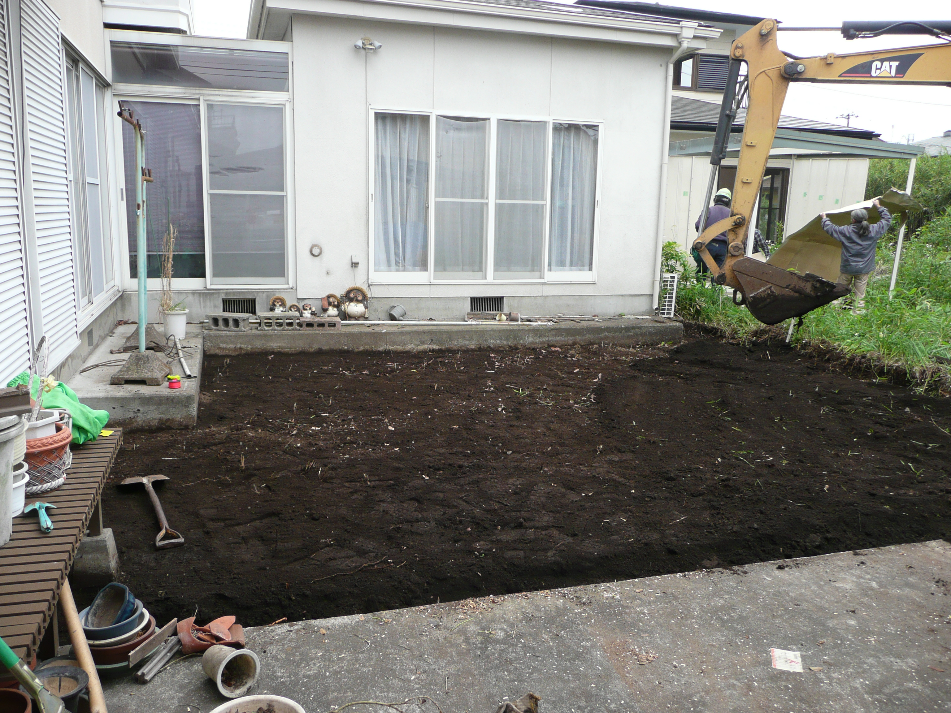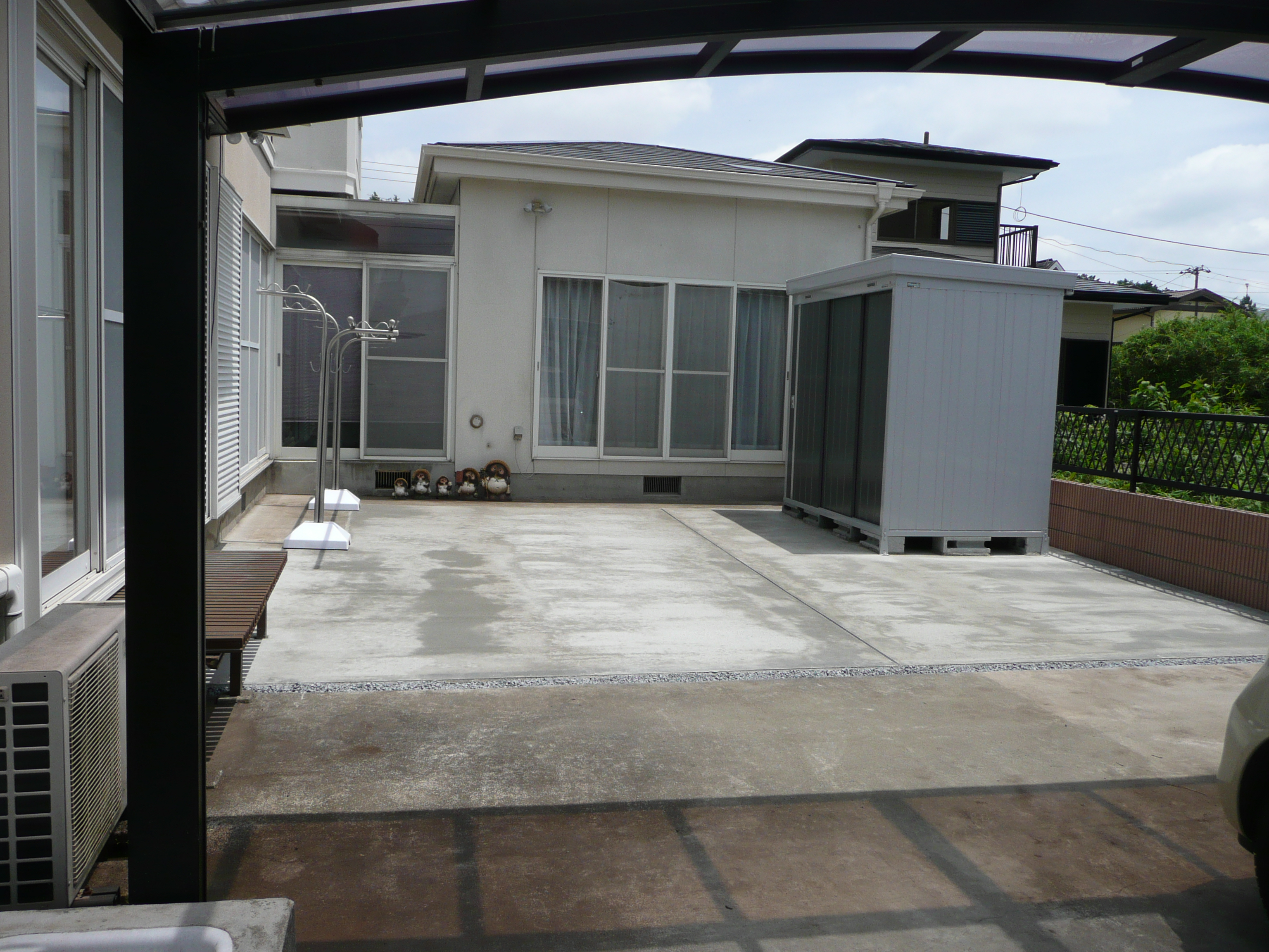 お施主様や家とともに年月を重ねてきた植木も大木になり,春先から夏にかけてグンと伸びる枝葉の始末も大変です(^_^;) お子様家族との同居の準備のため、駐車場の拡幅工事をさせていただくことになり、植木も全部取り除きました。