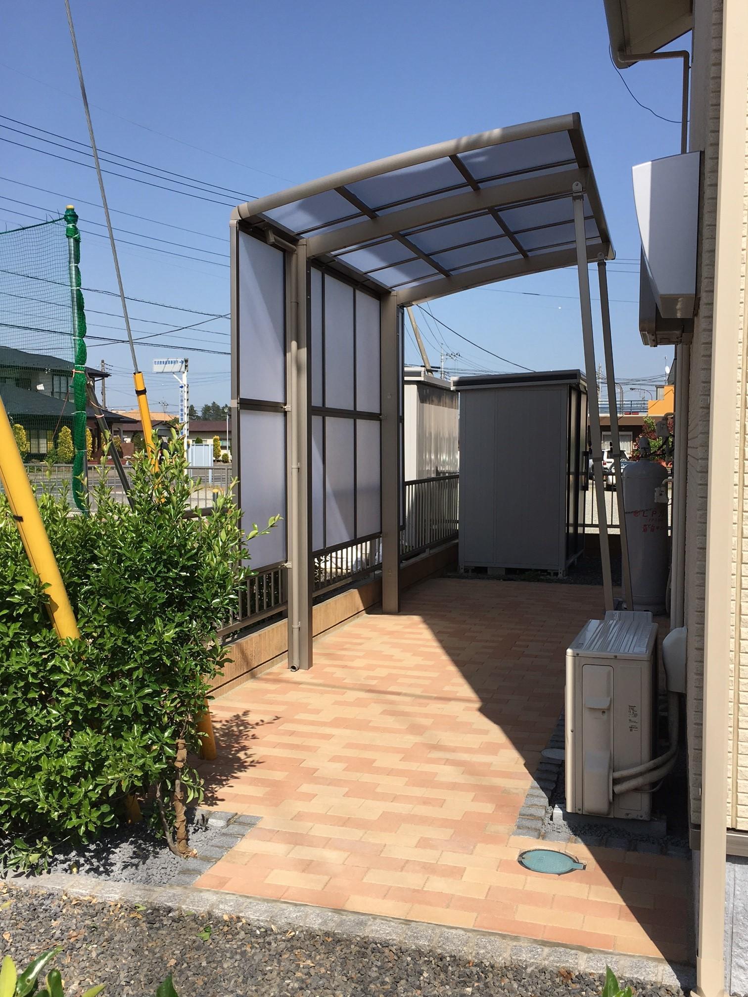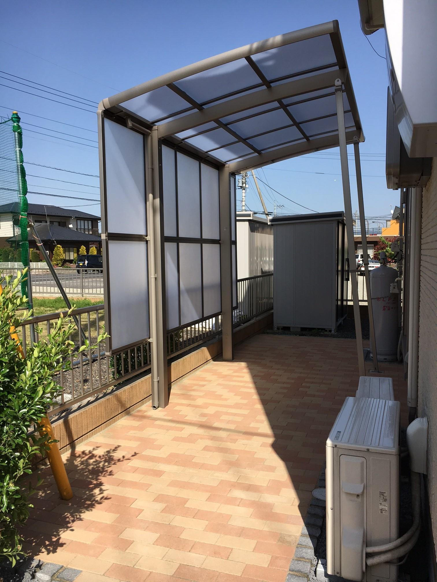 後日奥様のご依頼で、後付の物干しセットも取付けて、お洗濯物も干せるスペースに!使い勝手がまたひとつプラスされました。