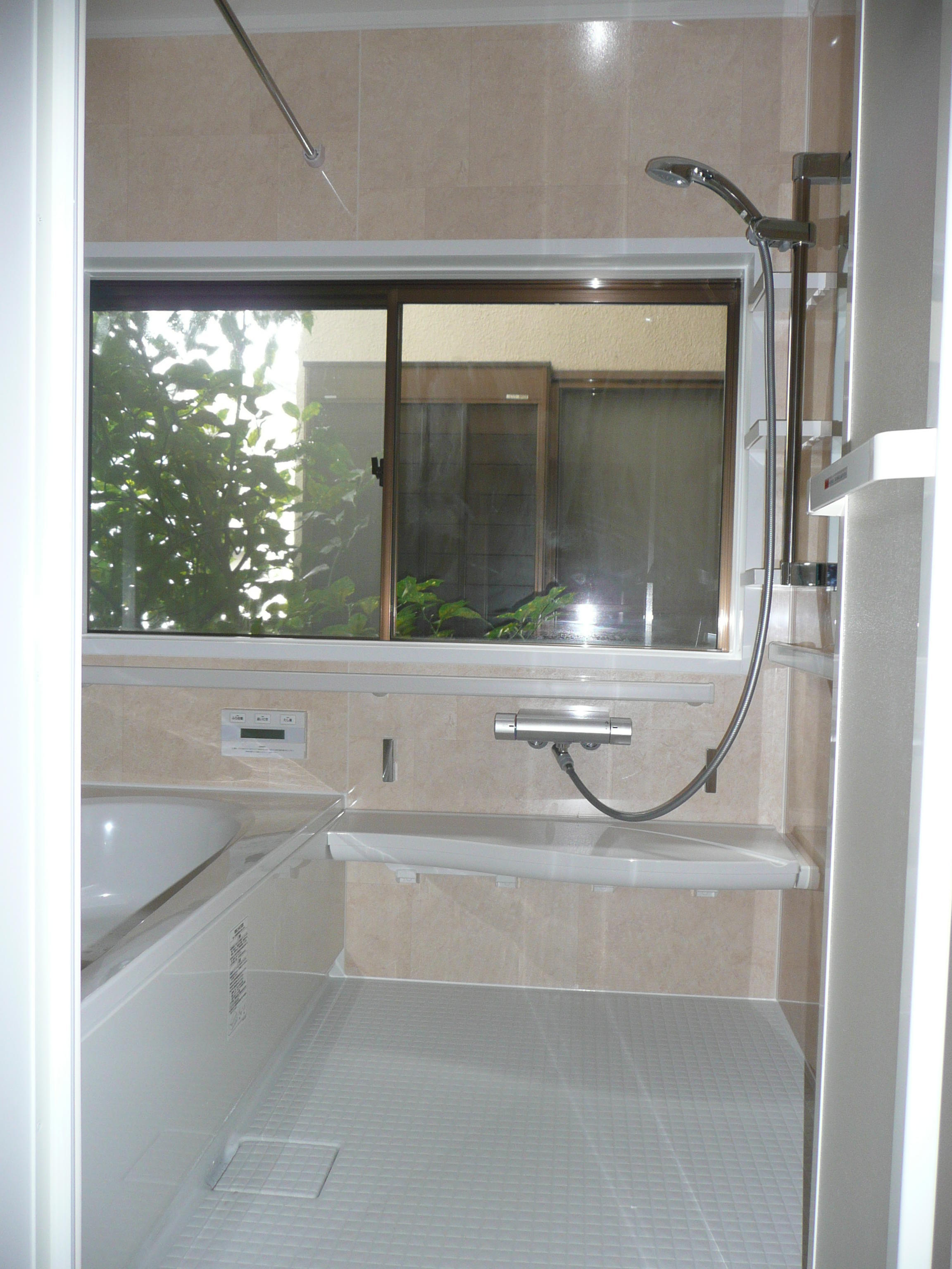 大きな窓が正面にある1.25坪の浴室でした。 シャワーや鏡、小物入れは窓をよけ右面に配置しました。 浴室換気乾燥暖房器も装備し、インプラス(撮影時点では付いていません)にも守られ、今年の冬は暖かいお風呂でゆっくりおくつろぎいただけますね(^^) S様、このたびはトイレ改修工事に続き、浴室・洗面室改修工事もご依頼いただき感謝しております。 また何かございましたら、お気軽にご連絡くださいませ。 LIXILシステムバスルーム「アライズ」について詳しくお知りになりたい方はこちらまで