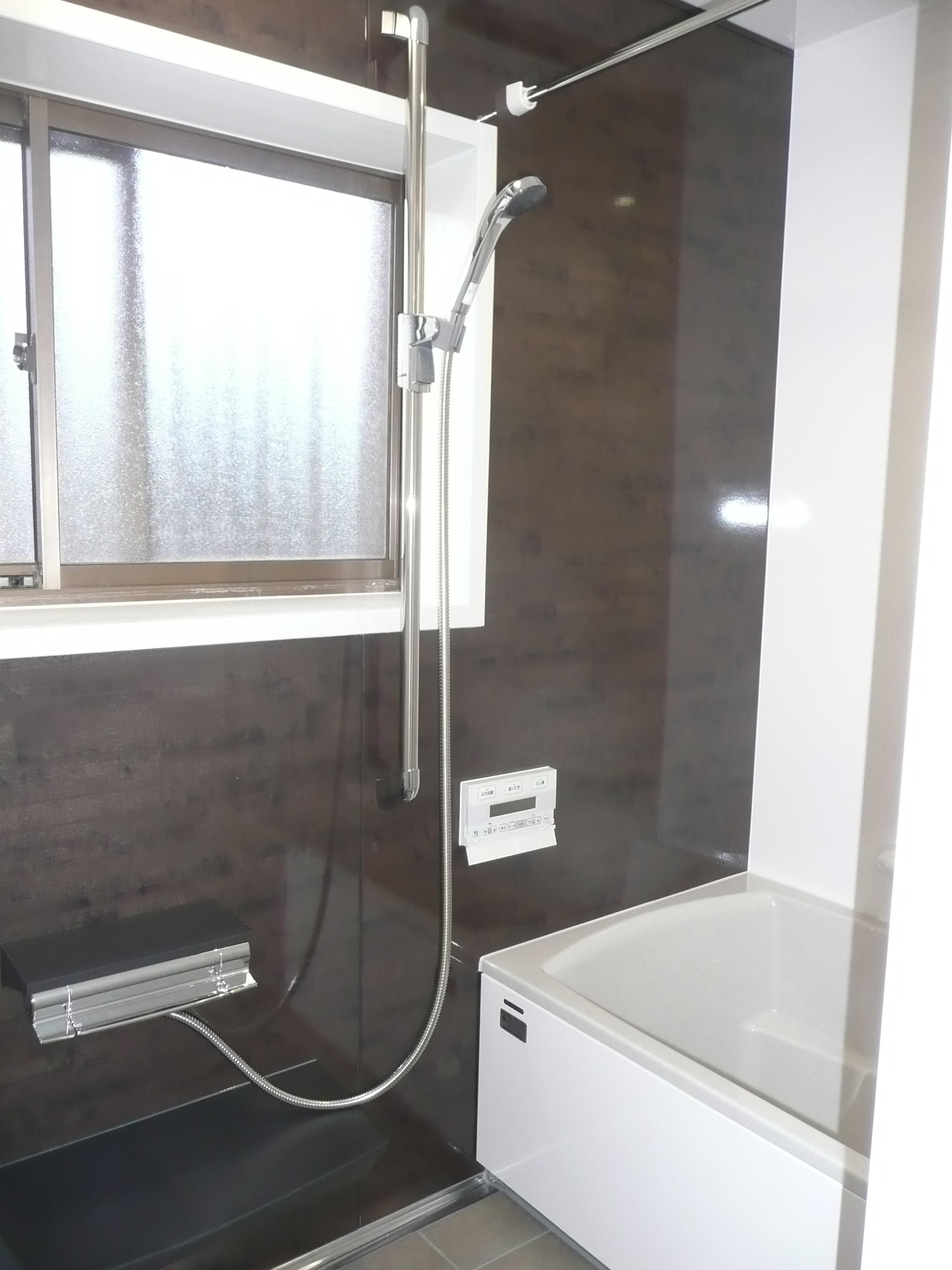 【施工後】システムバスに入れ替え、床もひんやりしにくくなりました。浴室換気乾燥暖房機も設置し、快適なバスタイムをお楽しみいただいております(^^)