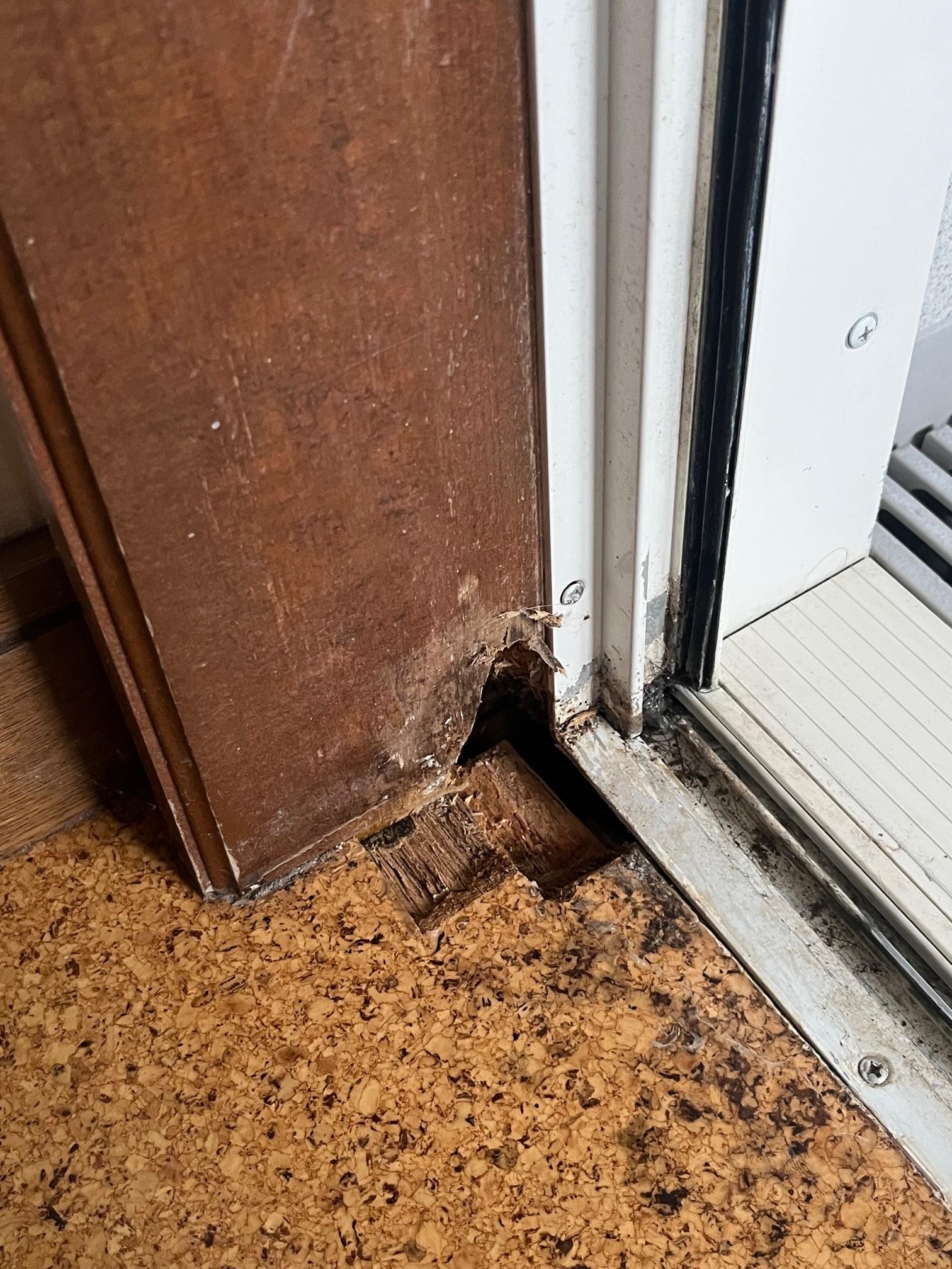 お風呂の入口の床が傷んできたというご相談です。 床と木枠が水を吸ってしまい、一部腐食がみられましたが、幸いにも腐食範囲がそれほど広がっていないため、床の部分補修と木枠の交換・枠交換に伴うクロス工事を行いました。 木枠から樹脂製の枠へ取り換え、床も枠幅に合わせた樹脂板を取り付けたので、水に強く安心してお使いいただけると思います。