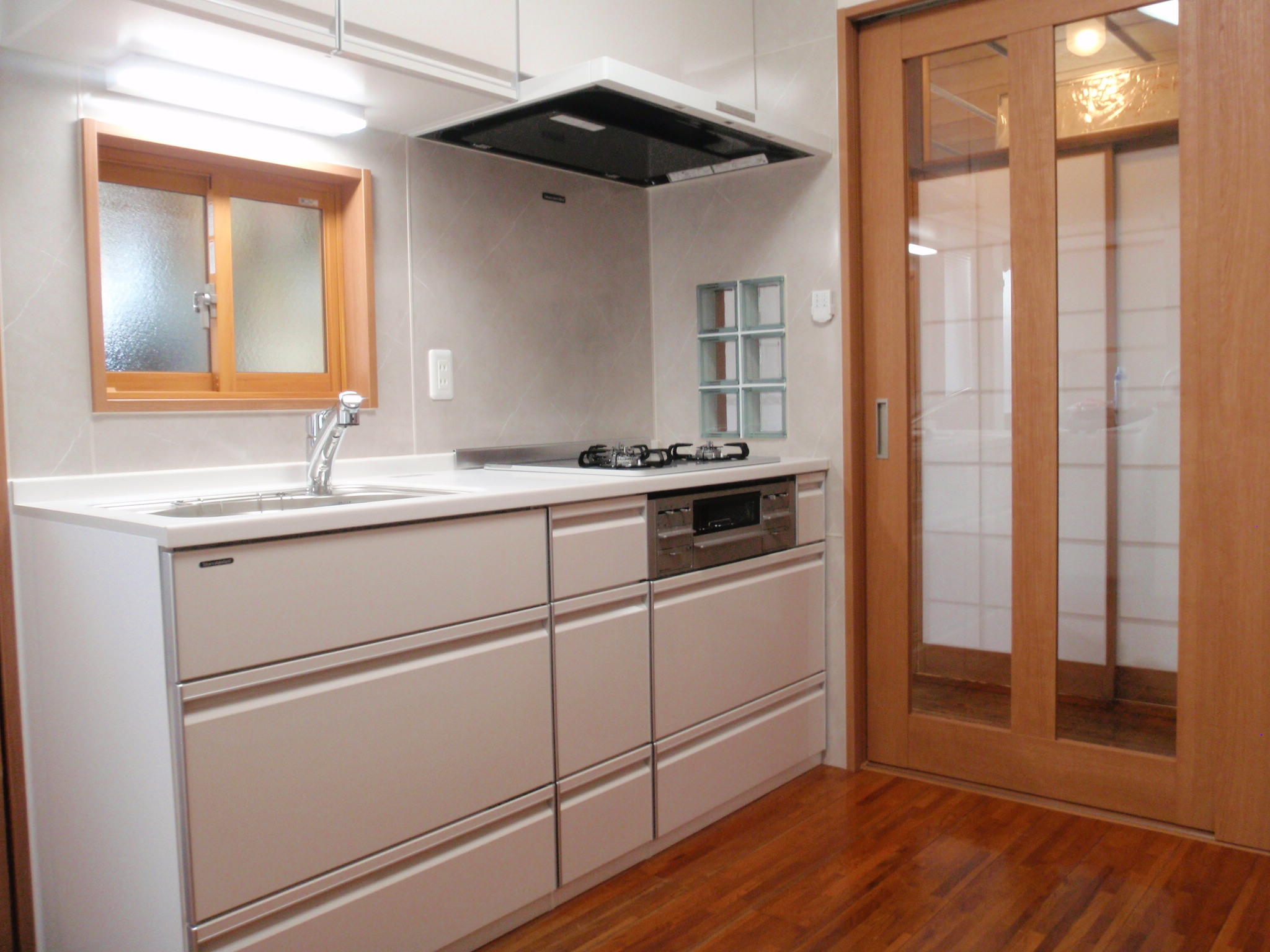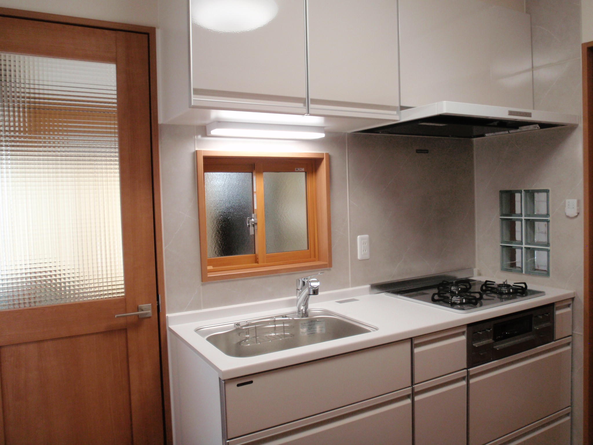 キッチン・内装・建具交換・手すり等の改修工事です。 ご年配のお客様で何かとご心配をされてのリフォームですが、 ご意見を伺い良く説明を繰り返し、お客様も納得されて工事へと 進みました。不安が多い中でも毎日のコミュニケーションで、少しでも 不安を解消し、最後は笑顔で完成を迎える事が出来て良かったです!