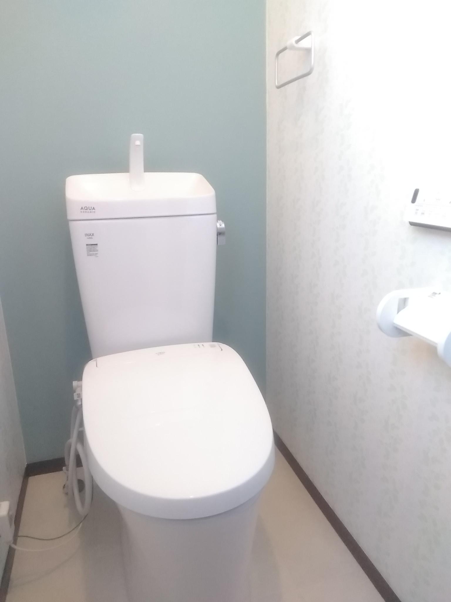 春のトイレリフォーム! お客様の選ばれた壁紙も心なしか 春らしいデザインに感じます。 快適なトイレで気持ちも〇〇もスッキリ!