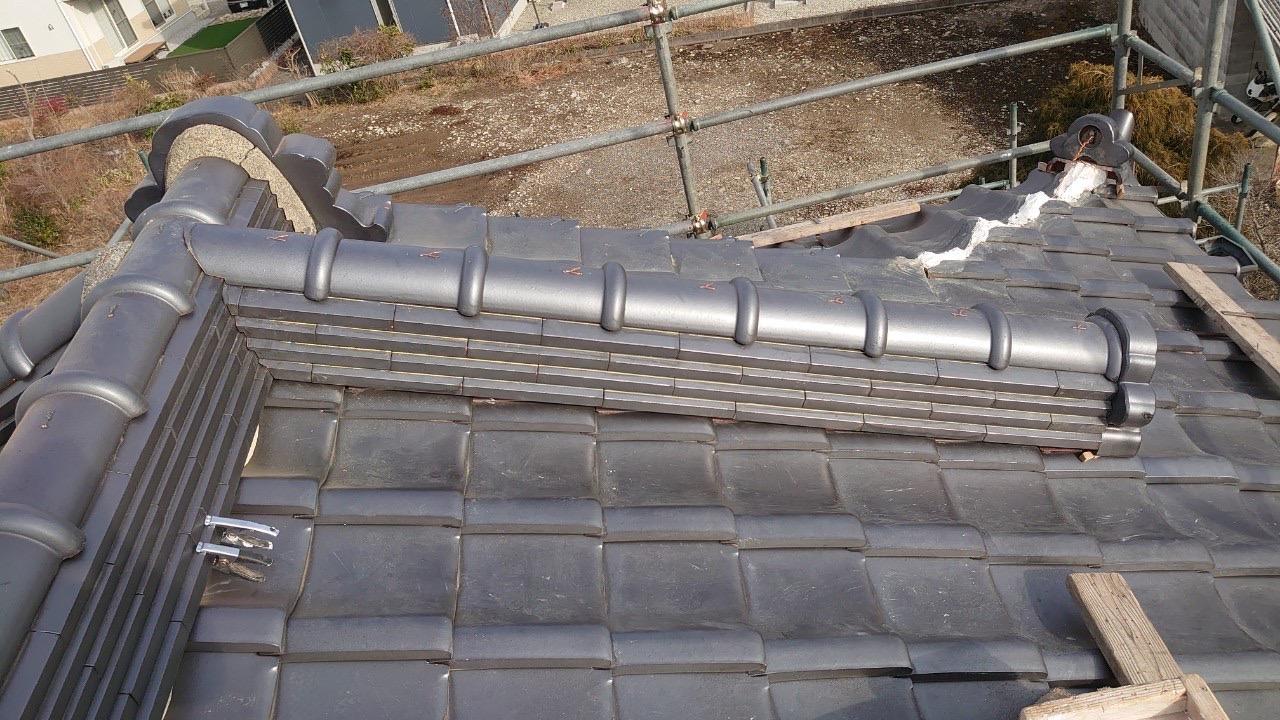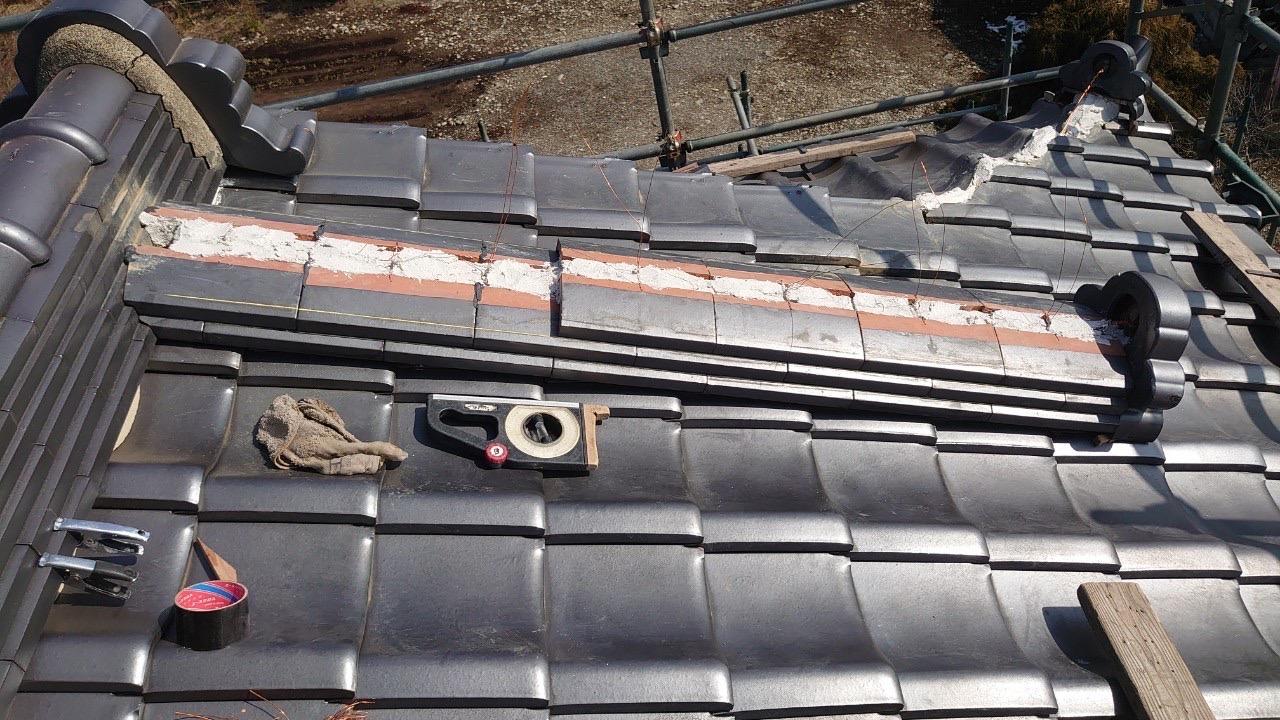 棟は一度解体し、既存瓦を再利用しながら積み直しを行いました。