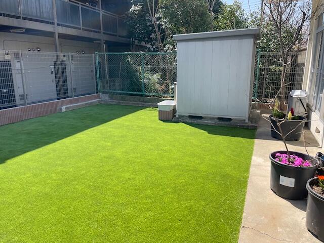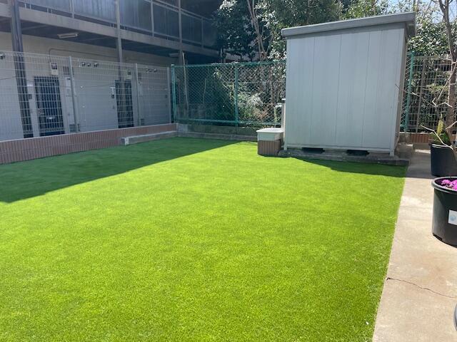 最近なかなかお手入れできなくなった植物たちを思い切って綺麗にして、家族の一員でもある2匹のワンちゃんと遊べるお庭を作りたい!そんなご要望で今回外構リフォームのご依頼をいただきました。最初は草むしりをしなくて済むように、コンクリート敷きのお庭を検討されていましたが、無機質な雰囲気になってしまうことや、最近のゲリラ雷雨の際の雨水の処理などを考えて、更にはワンちゃんたちの足ざわりの良いお庭にしたいというご要望にお応えして、人工芝を敷き詰めたお庭にさせていただくことになりました。