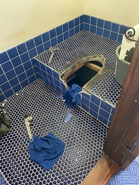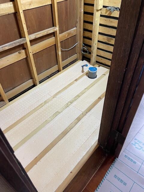 タイルの床を壊して新しく床を組みなおし、すっかり洋式トイレへ変貌しました。