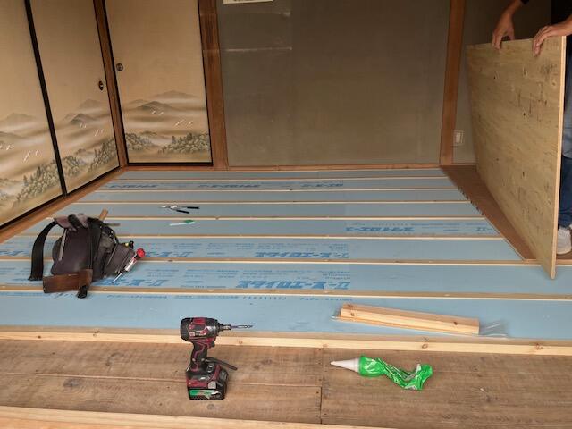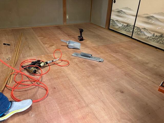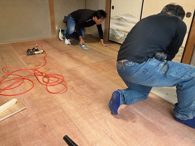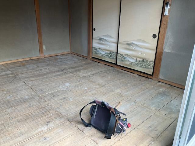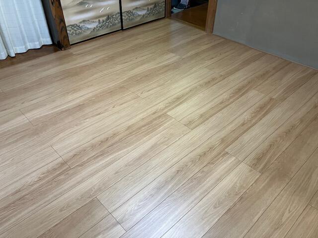 お母様が一人で暮らす実家の和室をリフォーム。離れて暮らす息子さんがお母様の為に、和室の畳をフローリングへとリフォームしたいとのご相談。寝室としてお使いの和室で折り畳みベットでの生活をされています。隣のリビングとの行き来や掃除、物の移動を含め、畳からフローリングへの工事を依頼されました。