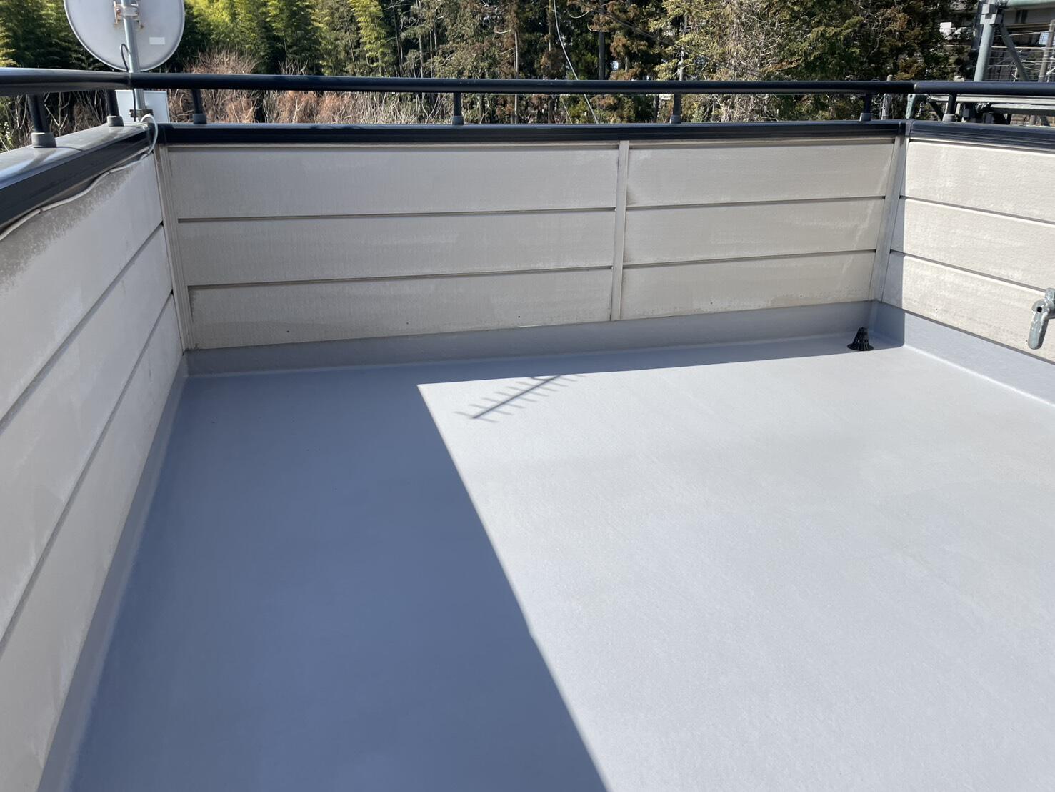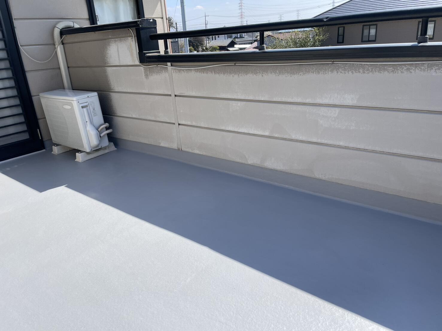 庇のない広いベランダは、当然の事ながら雨水の影響をもろに受けます。今回の現場に限らず、ベランダ防水を出来るだけ長持ちさせる方法は、表面の定期的な保護工事と、排水ドレンの掃除をこまめに行うこと。排水が良好であれば持ちがグンと良くなるそうです。