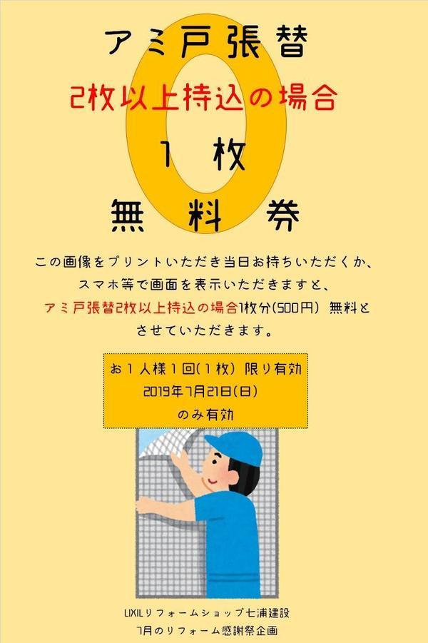 7月21日イベント会場に網戸2枚以上持ち込みのお客様は、