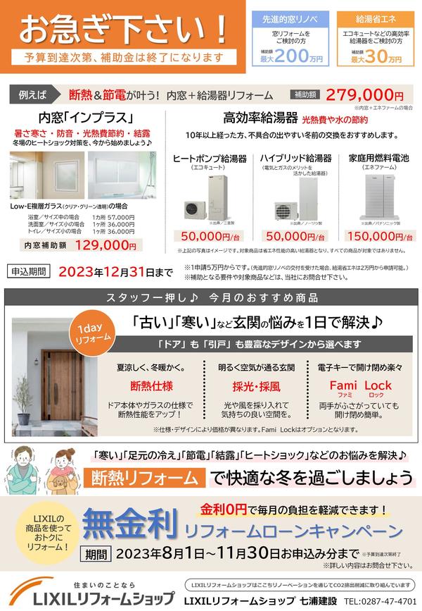 予算到達次第終了なので、気になる方はお早めにお問合せ下さい。