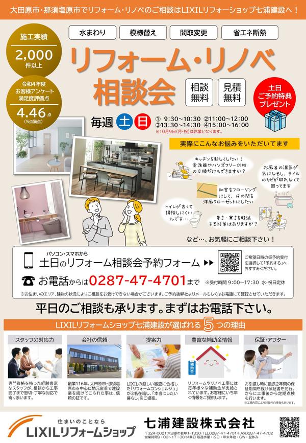 10月のリフォーム相談会は、毎週土日で開催いたします。