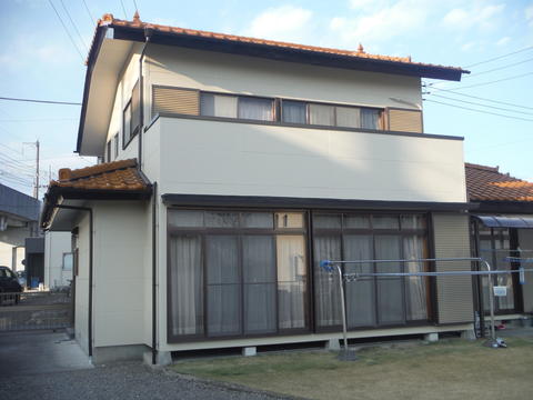 外壁・軒天・雨どい・破風板等をシリコン塗装2回塗りで、汚れも付きにくく明るい外観になりました。