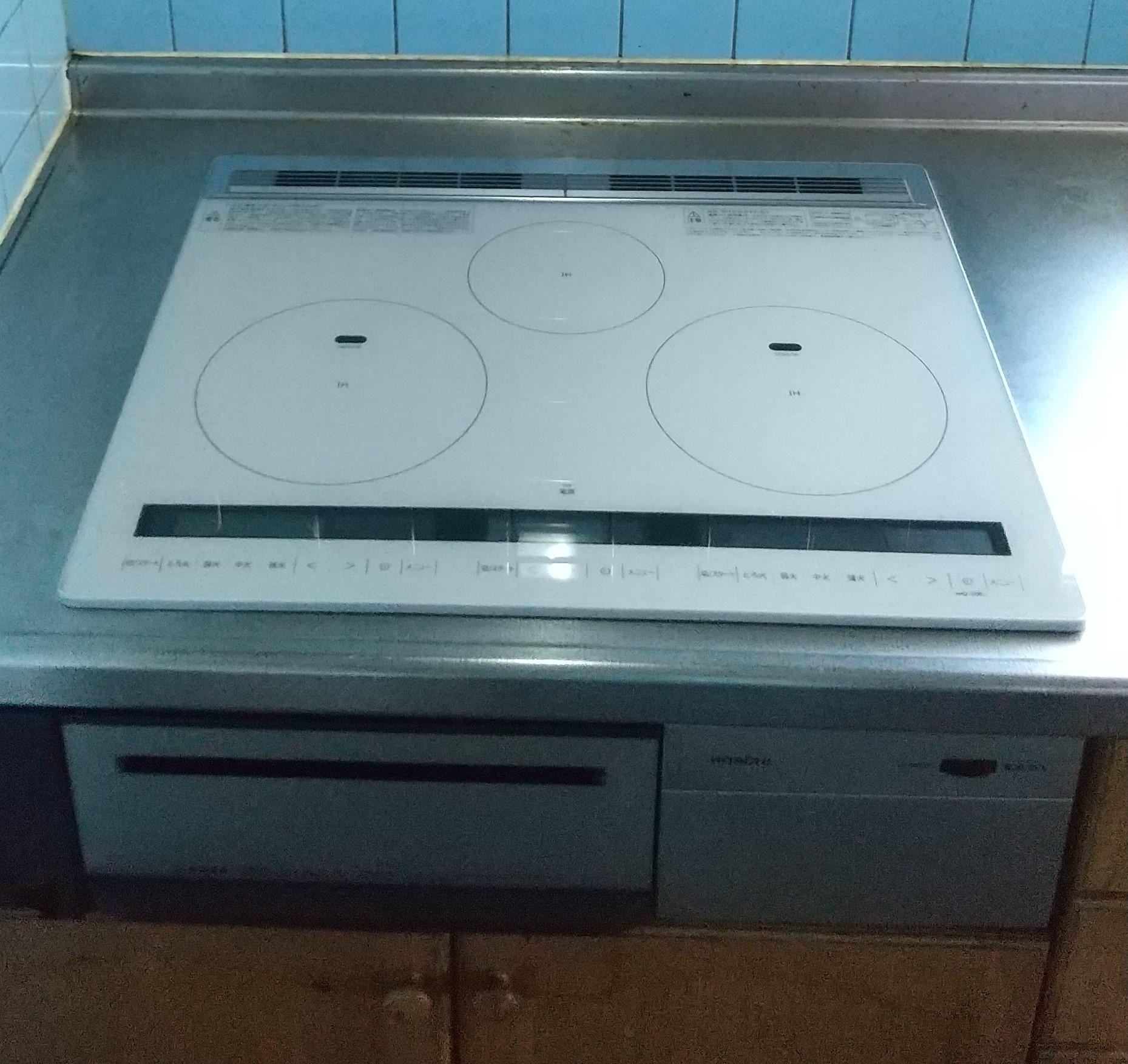 今まで使用していたIHコンロが故障してしまい、後継機種を提案 操作ボタン位置や操作方法が一部変わったので、商品説明をして 工事完了しました。