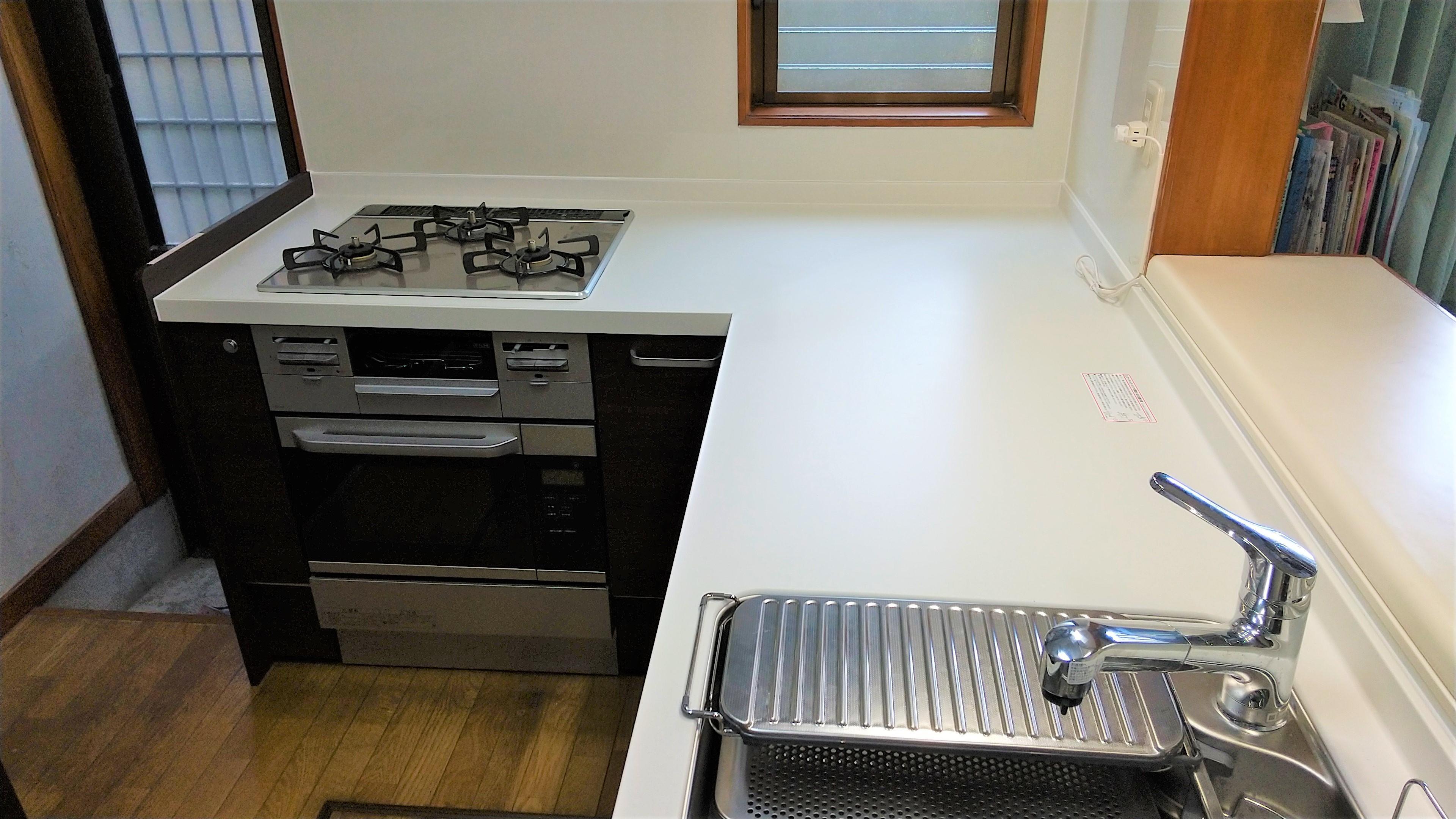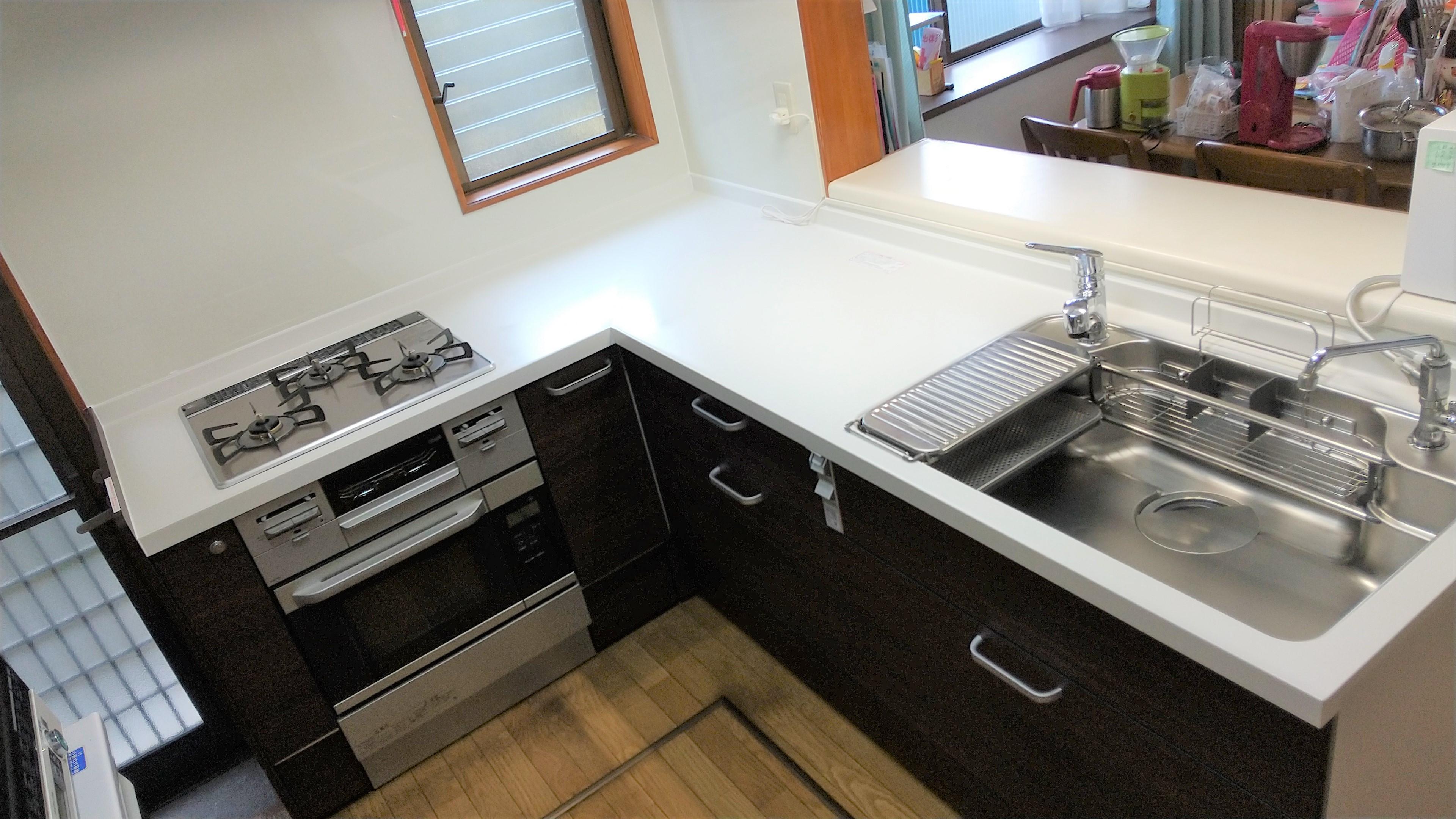 今回初めてL型キッチンの施工をさせていただきました。 キャビネットの納まりなどご相談させてもらい、ご満足 いただけました。 吊り戸も入替の為、天井クロスの張替えも行ったところ キッチン空間も明るくなり大変喜んでおりました。 いろいろな料理に挑戦していただければと思います。