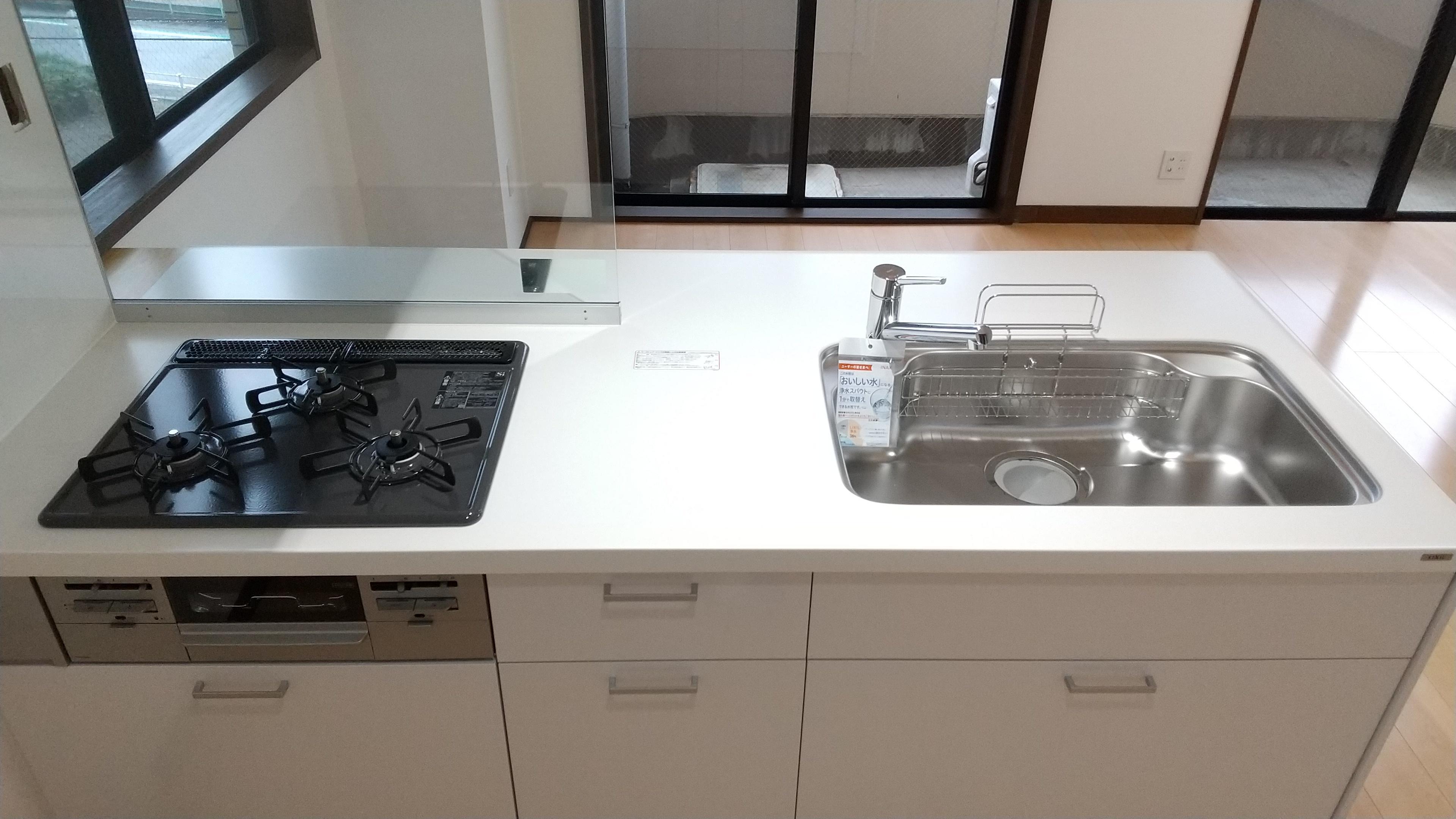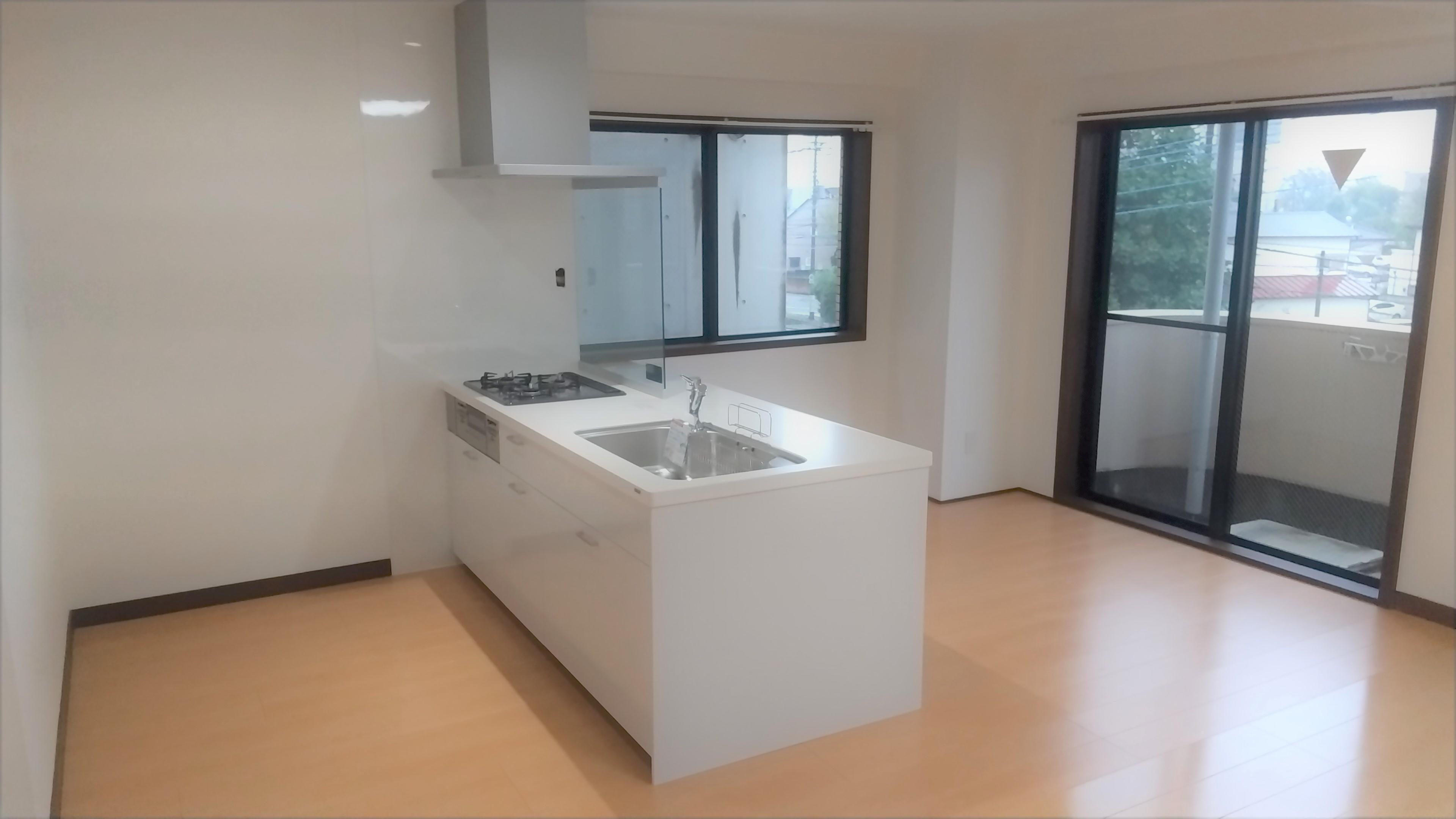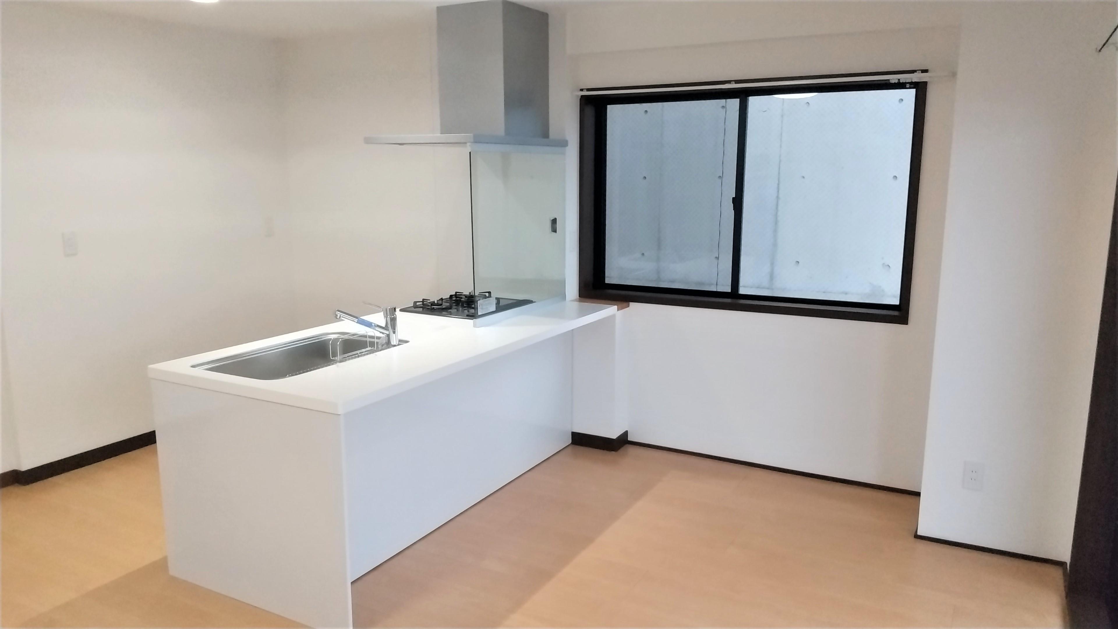 工事前はキッチンが独立しており暗く背面収納がありましたが狭く作業性も悪い状況でした。 キッチンと和室の隔てていた壁を取り去り開放的に生まれ変わったLDK