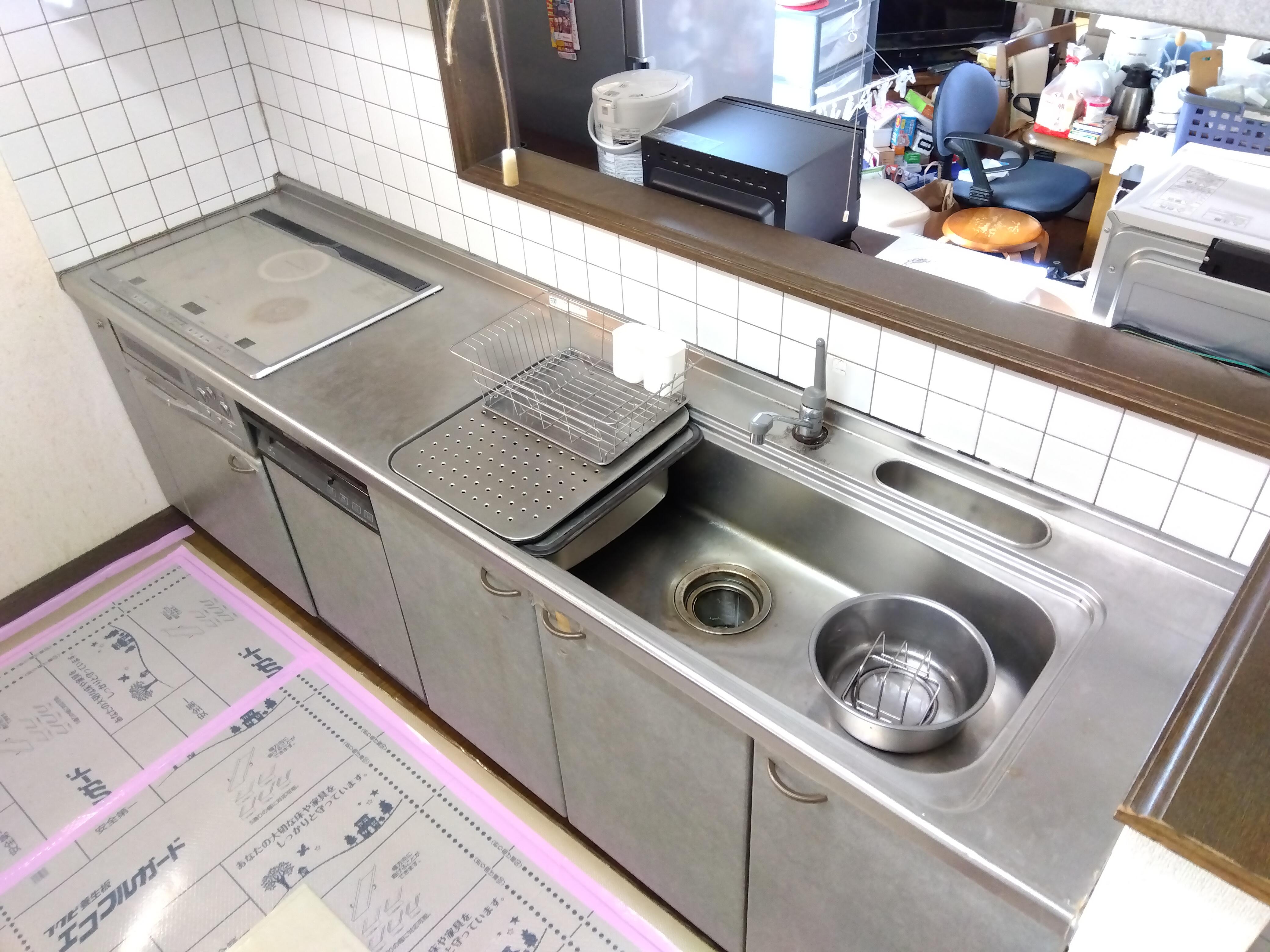施主様からお話を伺い水栓の根本からグラグラしている事もあり、キッチン下台のみリフォームしたいとの依頼いただきました。